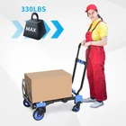 Make your life easier with the 330 lb Portable Expandable Folding Hand Truck! If you're always carrying loads, leaving the grocery store with heavy items, or lugging heavy items up the stairs, then it's to use this dolly from us. This Hand Cart is made of aluminum and plastic. If you need to store the foldable trolley in a corner, you can easily can fold it flat. Our Foldable Hand Truck has a maximum load capacity of 330 lbs. Heavy-duty and durable Easy to store and carry Holds up to 330 pounds One vehicle, two or four wheels Solid rubber wheels for smooth rolling Features: 330lbs HIGH LOAD Bearing: This collapsible cart is made of aluminum alloy and plastic, the load-bearing is up to 330lbs, which can carry the vast majority of your goods with heavy boxes, this solid and durable cart can save you a lot of effort and reduce a lot of sweat, providing you with a relaxing shopping experience and a happy outing to play! New upgraded version of the cart: The nylon wheel frame is thickened in layers to withstand heavier weight. The internal springs are synchronized and reinforced to greatly reduce unnecessary bouncing. Cast iron technology is used at all joints to make them stronger and not easy to break, making transportation safer. HEAVY DUTY AND DURABLE: Holds up to 330 lbs. when assembled as a 4-wheeled cart and 220 lbs. when assembled as a 2-wheeled cart to meet your different needs. This portable collapsible wheelbarrow is made of sturdy metal and resin, the collapsible wheelbarrow comes with 5-inch solid rubber flat tires wheels with a 360-degree swivel function for maximum functionality, it is stable and noiseless when in use, you can use it smoothly. TWO CARTS IN ONE, MULTIFUNCTIONAL: Our foldable cart easily converts from a four-wheeled cart to a two-wheeled cart, flexible enough to fit a variety of scenarios. QUICK CONVERSION, NO PINS OR TOOLS REQUIRED, switch to a two-wheeled upright cart or a four-wheeled folding cart in just a few seconds. Thanks to its lightweight and foldable design, it is perfect for use on the go. This foldable shopping cart with wheels is small enough to easily fit in the trunk of your car, making it perfect for use while shopping. Specification: Material: Aluminum, Cast Iron, Plastic Color: Blue Product size: 15.4 x 4.2 x 25.8 inches Item Weight: 16.5 pounds Maximum Load Capacity: Approx. 330 lbs Wheel Type: Rubber Package included: 1 * Hand Truck