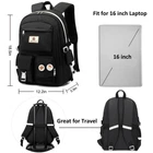 【Large Size & Gift】: The size of back pack is 13.8"x7.5"x17.8"(L*W*H), Weight:1.65 LB. The laptop bag with padded compartment sleeve fit for 13.3,15.6 ,16.1 inch tablet. This women book bag also along with fluffy ball key pendant and personality badge as gift makes the bags more fashionable and unique 【Waterproof Material &Smooth Zipper】: The campus backpack is made of waterproof, ultra-lightweight, high density nylon fabric and cute printing polyester lining. The metal zippers closure are used by the premium quality zippers to ensure the long-lasting usage 【Safety & Comfortable 】: The considerate belt on the both side can create a solid base of support if you’re packing a lot of stuffs on the back packs. The Widen and thicken durable S-shape straps is well-padded, adjustable and comfortable to carry. The luggage belt on the back can be fitted on luggage/suitcase to make your travel more convenience 【Multi-compartments & Large Capacity 】: The travel backpack for women has 5 separate different size pockets and two side pockets meet your daily storage. The front three pockets can hold charge device and other small items, convenient for your daily organization. The main pocket of includes laptop padded sleeve with elastic belt and hidden inner zipper pockets. The front tool pockets also come with multiple compartments to provide roomy space for necessities 【For Any Ages & Occasion】 The waterproof backpack purse is stylish enough for casual and student use, while the design provides the multi functionality. Backpack perfect for young teens, girls, ladies. The basic multipurpose daypack for most of your needs, easy to match your cloths, suitable for short trip, work, shopping, university, school, etc