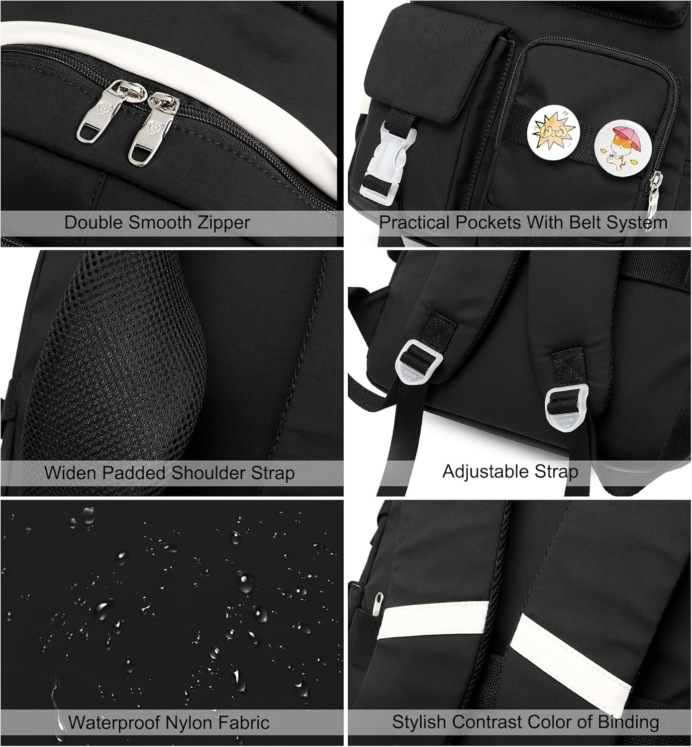 Store New Arrivals Add to Favorite View Feedback Laptop Backpacks 15.6 Inch College Backpack Elementary Middle High School Bag Large Cute Bookbags anti Theft Travel Back Pack Casual Daypack Kids Book Bag for Teens Girls Women Students (Black) Description Item model number Gbp0001 Age Range Description Big Kid, Kids, Teen, Adult Capacity Total 30 Liters Number Of Items 1 Color Black Product Dimensions 3 x 13 x 16 inches Country of Origin China Item Weight 1.39 Pounds Department Teens,Girls, Women Units 1 Count 【Large Size & Gift】: The size of back pack is 13.8"x7.5"x17.8"(L*W*H), Weight:1.65 LB. The laptop bag with padded compartment sleeve fit for 13.3,15.6 ,16.1 inch tablet. This women book bag also along with fluffy ball key pendant and personality badge as gift makes the bags more fashionable and unique 【Waterproof Material &Smooth Zipper】: The campus backpack is made of waterproof, ultra-lightweight, high density nylon fabric and cute printing polyester lining. The metal zippers closure are used by the premium quality zippers to ensure the long-lasting usage 【Safety & Comfortable 】: The considerate belt on the both side can create a solid base of support if you’re packing a lot of stuffs on the back packs. The Widen and thicken durable S-shape straps is well-padded, adjustable and comfortable to carry. The luggage belt on the back can be fitted on luggage/suitcase to make your travel more convenience 【Multi-compartments & Large Capacity 】: The travel backpack for women has 5 separate different size pockets and two side pockets meet your daily storage. The front three pockets can hold charge device and other small items, convenient for your daily organization. The main pocket of includes laptop padded sleeve with elastic belt and hidden inner zipper pockets. The front tool pockets also come with multiple compartments to provide roomy space for necessities 【For Any Ages & Occasion】 The waterproof backpack purse is stylish enough for casual and student use, while the design provides the multi functionality. Backpack perfect for young teens, girls, ladies. The basic multipurpose daypack for most of your needs, easy to match your cloths, suitable for short trip, work, shopping, university, school, etc Product Description 1 College Backpack 2 School Backpack 3 Travel Backpack ABOUT US We offer the best prices around on high quality products. Our E-store includes media such as books, movies, music and games while offering electronics, toys, sporting apparel, clothing, tools, general home, garden items and more. SHIPPING We are always working hard to ensure your package arrives as soon as possible. Please understand that some factors like weather, high postal traffic, and the performance of shipping companies are outside of our control. We offer free shipping to the lower 48 states and ship within 2 business days of payment, usually sooner. We do not accept P.O. Boxes. Please provide a physical address. RETURNS We offer a 30-Day Return Policy on items which you are not completely satisfied with. You have the option for a full-refund or an exchange of the item. No returns are available on items shipped outside of the USA. PAYMENT We accept PayPal. CONTACT US This page content is yet to come Please ad us to your favorite seller and visit again later Thank You