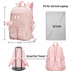 【Large Size & Gift】: The size of back pack is 13.8"x7.5"x17.8"(L*W*H), Weight:1.65 LB. The laptop bag with padded compartment sleeve fit for 13.3,15.6 ,16.1 inch tablet. This women book bag also along with fluffy ball key pendant and personality badge as gift makes the bags more fashionable and unique 【Waterproof Material &Smooth Zipper】: The campus backpack is made of waterproof, ultra-lightweight, high density nylon fabric and cute printing polyester lining. The metal zippers closure are used by the premium quality zippers to ensure the long-lasting usage 【Safety & Comfortable 】: The considerate belt on the both side can create a solid base of support if you’re packing a lot of stuffs on the back packs. The Widen and thicken durable S-shape straps is well-padded, adjustable and comfortable to carry. The luggage belt on the back can be fitted on luggage/suitcase to make your travel more convenience 【Multi-compartments & Large Capacity 】: The travel backpack for women has 5 separate different size pockets and two side pockets meet your daily storage. The front three pockets can hold charge device and other small items, convenient for your daily organization. The main pocket of includes laptop padded sleeve with elastic belt and hidden inner zipper pockets. The front tool pockets also come with multiple compartments to provide roomy space for necessities 【For Any Ages & Occasion】 The waterproof backpack purse is stylish enough for casual and student use, while the design provides the multi functionality. Backpack perfect for young teens, girls, ladies. The basic multipurpose daypack for most of your needs, easy to match your cloths, suitable for short trip, work, shopping, university, school, etc