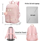 【Large Size & Gift】: The size of back pack is 13.8"x7.5"x17.8"(L*W*H), Weight:1.65 LB. The laptop bag with padded compartment sleeve fit for 13.3,15.6 ,16.1 inch tablet. This women book bag also along with fluffy ball key pendant and personality badge as gift makes the bags more fashionable and unique 【Waterproof Material &Smooth Zipper】: The campus backpack is made of waterproof, ultra-lightweight, high density nylon fabric and cute printing polyester lining. The metal zippers closure are used by the premium quality zippers to ensure the long-lasting usage 【Safety & Comfortable 】: The considerate belt on the both side can create a solid base of support if you’re packing a lot of stuffs on the back packs. The Widen and thicken durable S-shape straps is well-padded, adjustable and comfortable to carry. The luggage belt on the back can be fitted on luggage/suitcase to make your travel more convenience 【Multi-compartments & Large Capacity 】: The travel backpack for women has 5 separate different size pockets and two side pockets meet your daily storage. The front three pockets can hold charge device and other small items, convenient for your daily organization. The main pocket of includes laptop padded sleeve with elastic belt and hidden inner zipper pockets. The front tool pockets also come with multiple compartments to provide roomy space for necessities 【For Any Ages & Occasion】 The waterproof backpack purse is stylish enough for casual and student use, while the design provides the multi functionality. Backpack perfect for young teens, girls, ladies. The basic multipurpose daypack for most of your needs, easy to match your cloths, suitable for short trip, work, shopping, university, school, etc