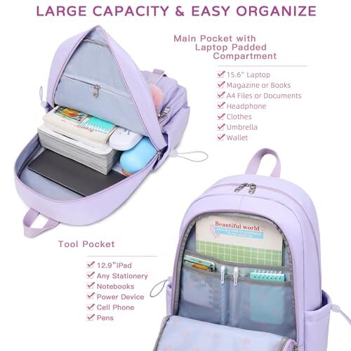 Laptop Backpack 15.6 Inch Kids Elementary Middle High School Bag College Backpacks Anti Theft Travel Back Pack Large Bookbags for Teens Girls Women Students (Purple) 【Large Size & Gift】: The size of back pack is 13.8"x7.5"x17.8"(L*W*H), Weight:1.65 LB. The laptops bag with padded compartment sleeve fit for 13.3,14,16 inch tablet. This women book bag also along with fluffy ball key pendant as gift makes the bags more fashionable and unique 【Waterproof Material &Smooth Zipper】: The middle high school campus backpack is made of waterproof, ultra-lightweight, high density nylon fabric and cute printing polyester lining. The metal zippers closure are used by the premium quality zippers to ensure the long-lasting usage 【Convenient & Comfortable 】: The considerate belt on the both side can create a solid base of support if you’re packing a lot of stuffs on the knapsack. The Widen and thicken durable S-shape straps is well-padded, adjustable and comfortable to carry. The luggage belt on the back of bagsack can be fitted on luggage/suitcase to make your travel more convenience. The shoulder strap specifically involves a card pocket for easy put your credit card. 【Multi-compartments & Large Capacity 】: The travel backpack for women has 7 separate different compartments and two side elastic pockets. The front three pockets can hold charge device and other small items. The main compartment of includes laptop padded sleeve with elastic belt. The front tool compartment also come with multiple pockets to provide roomy space for necessities . The back zipper pocket can protect your important items from theft. 【For Any Ages & Occasion】 The lightweight backpacking purse is stylish enough for casual and student use, while the design provides the multi functionality. Backpack perfect for young teens, girls, ladies. The basic multipurpose daypacks for most of your needs, easy to match your cloths, suitable for short trip, travelling,work, shopping, university, elementary school, etc.Recommended Age Grading: 3-14 years old Shipping We ship within Three business days of payment, usually sooner. We use a selection of shipping services such as UPS, FedEx, USPS etc. We only ship to the lower 48 states, no APO/FPO addresses or PO Boxes allowed. Local pickups and combined shipping options are not provided at this time. Return You can return a product for up to 30 days from the date you purchased it. Any product you return must be in the same condition you received it and in the original packaging. Please keep the receipt. Payment We accept payment by any of the following methods: PayPal Please pay as soon as possible after winning an auction, as that will allow us to post your item to you sooner! Feedback Customer satisfaction is very important to us. If you have any problem with your order, please contact us and we will do our best to make you satisfied. Contact Us If you have any queries, please contact us via ebay. We usually respond within 24 hours on weekdays. Please visit our eBay store to check out other items for sale! Thank you for shopping at our store.
