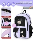 【Chic & Stylish - College Backpack 】This school backpacks for teen girls features a charming design with classic color contrasting, highlighted by a cute.The size of back pack is 13.8"x7.5"x17.8"(L*W*H), Weight:1.65 LB. The laptop bag with padded compartment sleeve fit for 13.3,15.6 ,16.1 inch tablet. This women book bag also along with fluffy ball key pendant and personality badge as gift makes the bags more fashionable 【Spacious and Organized Design-School Backpack】: This backpack for girls offers a 30 L capacity with 12 pockets for effortless organization.The backpacks for women has 5 separate different size pockets and two side pockets meet your daily storage. The front three pockets can hold charge device and other small items, convenient for your daily organization. The main pocket of includes laptop padded sleeve with elastic belt and hidden inner zipper pockets 【Waterproof Material-Tough and Durable Backpack】: The school supplies for teenagner is made of waterproof, ultra-lightweight, high density nylon fabric and cute printing polyester lining. The metal zippers closure are used by the premium sturdy zippers to ensure the long-lasting usage.It features reinforced zippers and double-stitched seams for added durability 【Safety & Comfortable-Travel Backpack】: The considerate belt on the both side can create a solid base of support if you’re packing a lot of stuffs on the cute back pack. The Widen and thicken durable S-shape straps is well-padded, adjustable and comfortable to carry. The luggage belt on the back of the girl’s rucksack can be fitted on luggage/suitcase to make your travel more convenience 【For Any Ages & Occasion-Women Backpacks】 The commuters daypacks is stylish enough for leisure and student use, while the design provides the multi functionality. Perfect as kids school bag, children elementary middle high school backpack,teens fashion back packs,university backpacks,heavy duty book bags for teenagers, casual back bag, light flight traveling backpack,work backpack purse for nurse teacher,carry on bagpack for women. Suitable for short trip, work, shopping, university, school, etc