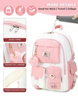 【Chic & Stylish - College Backpack 】This school backpacks for teen girls features a charming design with classic color contrasting, highlighted by a cute.The size of back pack is 13.8"x7.5"x17.8"(L*W*H), Weight:1.65 LB. The laptop bag with padded compartment sleeve fit for 13.3,15.6 ,16.1 inch tablet. This women book bag also along with fluffy ball key pendant and personality badge as gift makes the bags more fashionable 【Spacious and Organized Design-School Backpack】: This backpack for girls offers a 30 L capacity with 12 pockets for effortless organization.The backpacks for women has 5 separate different size pockets and two side pockets meet your daily storage. The front three pockets can hold charge device and other small items, convenient for your daily organization. The main pocket of includes laptop padded sleeve with elastic belt and hidden inner zipper pockets 【Waterproof Material-Tough and Durable Backpack】: The school supplies for teenagner is made of waterproof, ultra-lightweight, high density nylon fabric and cute printing polyester lining. The metal zippers closure are used by the premium sturdy zippers to ensure the long-lasting usage.It features reinforced zippers and double-stitched seams for added durability 【Safety & Comfortable-Travel Backpack】: The considerate belt on the both side can create a solid base of support if you’re packing a lot of stuffs on the cute back pack. The Widen and thicken durable S-shape straps is well-padded, adjustable and comfortable to carry. The luggage belt on the back of the girl’s rucksack can be fitted on luggage/suitcase to make your travel more convenience 【For Any Ages & Occasion-Women Backpacks】 The commuters daypacks is stylish enough for leisure and student use, while the design provides the multi functionality. Perfect as kids school bag, children elementary middle high school backpack,teens fashion back packs,university backpacks,heavy duty book bags for teenagers, casual back bag, light flight traveling backpack,work backpack purse for nurse teacher,carry on bagpack for women. Suitable for short trip, work, shopping, university, school, etc