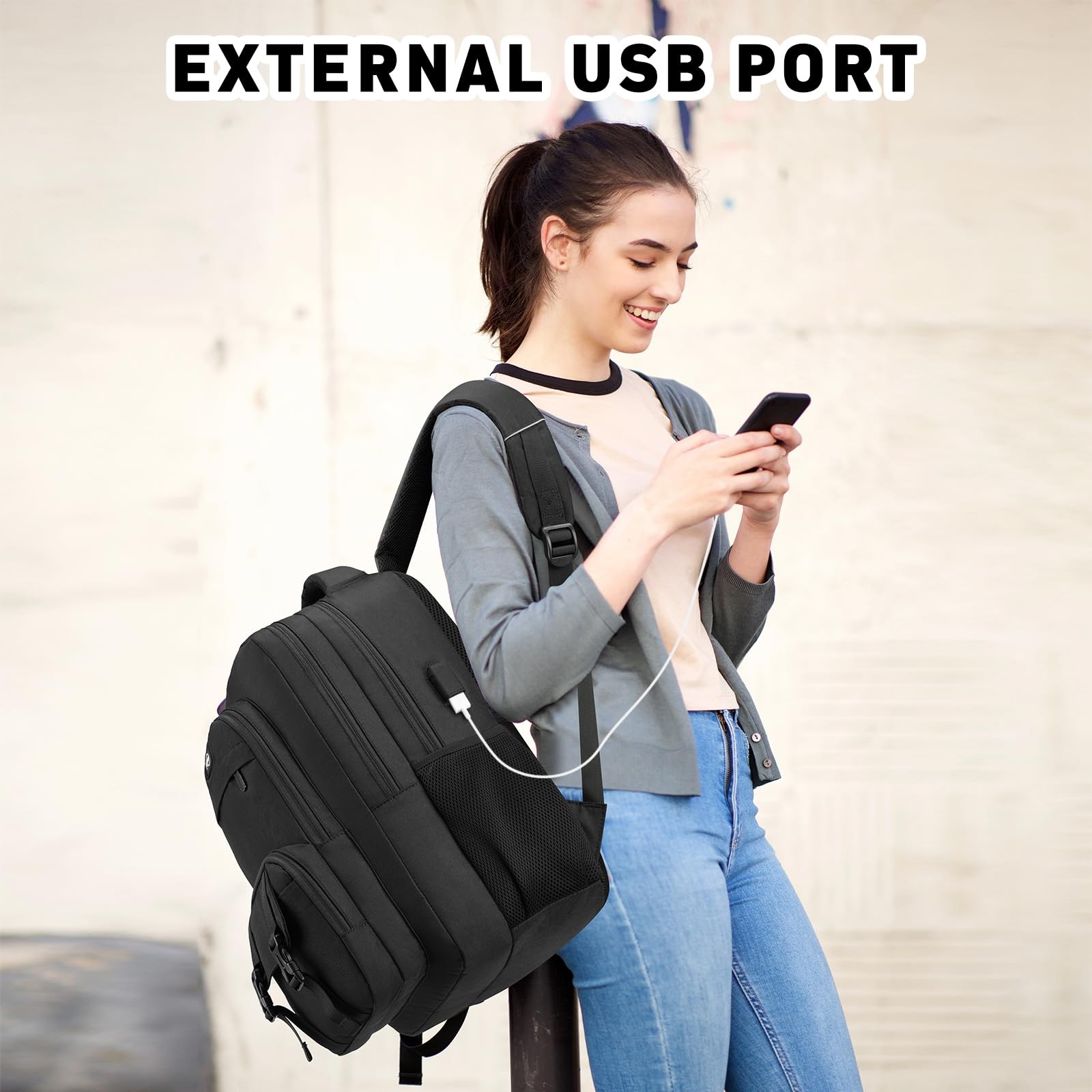 【Multi-Compartment Design】– The school backpack features 5 compartments: a padded laptop sleeve (fits 16.1" laptop & 12.9" iPad), a main compartment, and 4 front pockets. Plus, 2 side water bottle holders for easy access. 【Spacious & Lightweight】– The schoolbag measures 11.8" x 7.5" x 17.7" with 25L capacity, weighing only 1.4 lbs. It ensures enough storage room to store your school books or daily necessities for back to school or an overnight trip; Organizer compartment with various small pockets keeps your items organized and easier to find. 【Ergonomic & Secure】 – The bookbag for teens boys and girls features padded, adjustable S-shaped straps for comfort and a luggage strap for travel. Hidden anti-theft pocket keeps valuables safe. 【Durable & USB Charging Port】– The girls book bag is made of water-resistant polyester fabric with sturdy zippers. Built-in USB charging port for on-the-go device charging. 【Versatile for School & Daily Use】– Stylish and functional, perfect for middle school kids, college, work, or travel. A must-have unisex school backpack for students and professionals.