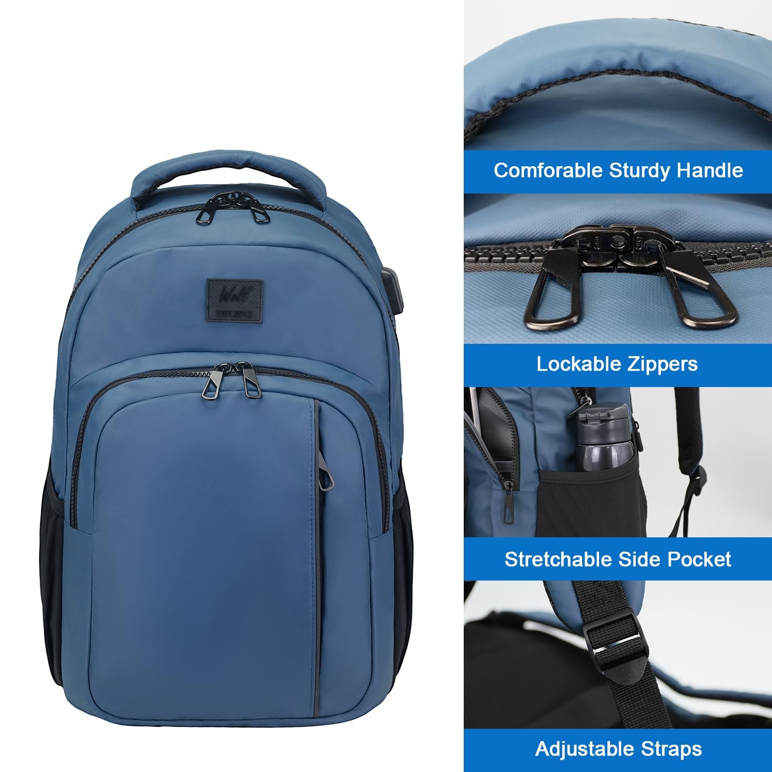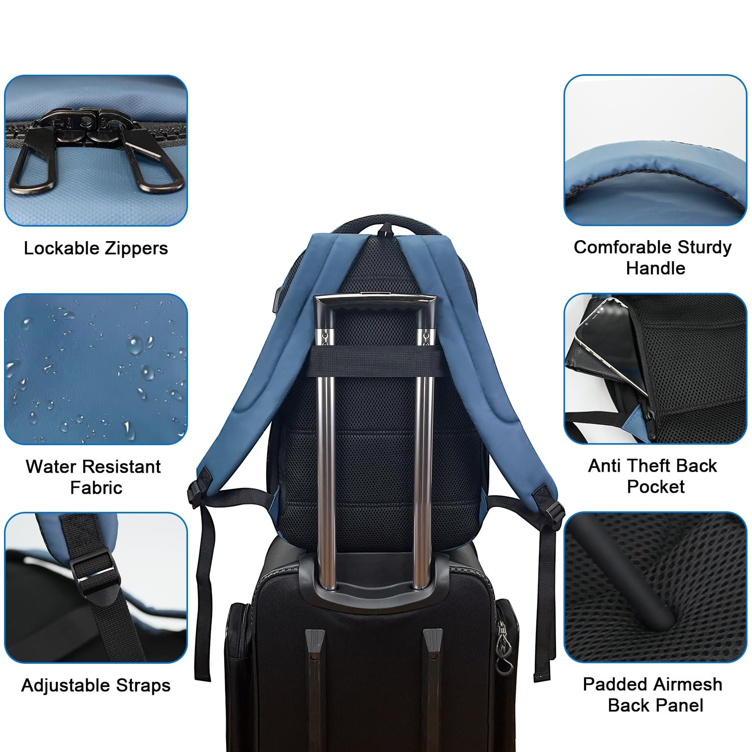 Introducing the Laptop Backpack, the perfect blend of style, durability, and functionality for your everyday needs. Whether you are a busy professional heading to the office, a college student looking for a reliable companion, or a frequent traveler on-the-go, this backpack is designed to meet your requirements with ease. This versatile backpack features a spacious interior with a separate compartment design to accommodate laptops up to 15.6 inch or 17 inch, providing extra protection to keep your device safe and secure during your commute or travels. The elegant design is complemented by anti theft zippers, adding a touch of sophistication to your everyday look. Equipped with a convenient USB charging port, you can easily stay connected and powered up while on the move. Simply plug in your power bank and charge your devices anytime, anywhere, making it an essential feature for business professionals, students, and casual users alike. Crafted with breathable and water-resistant material, this backpack ensures your belongings are protected from the elements, allowing you to carry it in any weather condition without worry. The back luggage strap allows for easy transport while the anti-theft pocket provides added security for your valuables, making it an ideal choice for both work and travel. Large Capacity and Organization: The laptop backpack comes with a main compartment to accommodate a variety of items such as A4 folders, travel accessories, clothing and chargers. It also features a hidden anti-theft pocket for valuables like smartphone and wallet, and two side mesh pockets for water bottles or umbrellas Laptop Compartment: This roomy laptop backpack includes a specialized compartment designed to securely hold 15.6" or 17" laptops, complemented by a distinct area for smaller electronic gadgets Practical USB Port: An external USB port offers a hassle-free way to charge your mobile phone and other electronic devices on the go. It ensures your devices are effortlessly charged and readily available for use throughout your travels or daily routines Functional Luggage Strap and Multipurpose: A luggage strap on the back lets you attach the travel backpack to your suitcase, freeing up your hands. This versatile backpack is suitable for daily life, business, holidays, or travel, facilitating your usage Quality Material and Solid Construction: Crafted from durable polyester fabric, this travel backpack is both tear-resistant and waterproof, with sturdy zippers. Equipped with adjustable shoulder straps, a breathable and padded mesh back, It's a reliable travel companion for both men and women