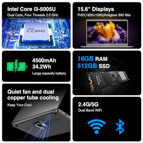 30 Days Return Policy Fast Delivery Trusted seller Laptop Computer, 15.6-inch FHD Display, 16GB RAM, 512GB SSD, Intel Core i3-5005U, Windows 11 Notebook for Students, 2.4G/5G WiFi, Ethernet RJ45, Numeric Keypad, USB-A, HD&M Product Description 【POWERFUL PROCESSOR】Experience swift and efficient computing with the Intel Core i3-5005U processor, boasting 2 cores, 4 threads, and a turbo frequency that reaches up to 2.4GHz, delivering robust computing power for all your work needs. 【LARGE RAM AND STORAGE】Equipped with 16GB of RAM, this laptop ensures seamless application performance, while the 512GB SSD offers ample storage capacity, with the option to expand up to 1TB. An additional TF card slot supports up to 256GB of extra storage, providing greater flexibility for your files and media. 【STUNNING FULL HD DISPLAY】Enjoy vivid colors and reduced visual fatigue on the 15.6-inch full HD anti-vertigo IPS screen with 1920 x 1080 pixels and 300 nits brightness. Ideal for entertainment and detailed work. 【VERSATILE CONNECTIVITY OPTIONS】Experience seamless connectivity with the following ports: standard HD&MI, 1 x Ethernet RJ45, 2 x USB 3.2, 1 x 3.5mm headphone jack, and 1 x TF card slot. This laptop provides all the necessary ports for connecting a variety of devices. 【SEAMLESS WIRELESS CONNECTION】Built-in 2.4G/5G Dual Band WiFi and Bluetooth 4.2 provide a stable high-speed internet connection and seamless connectivity with various Bluetooth devices. Enjoy uninterrupted online activities and peripheral connections. Shipping Returns Payment Shipping Shipping is FREE to all addresses other than APO/PO boxes in the lower 48 states. All our stock ships from US-based warehouses. Shipped via USPS or UPS (depending on location and package weight) Unless stated otherwise, all orders will ship within 24-72 hours of your payment being processed. Check our feedback to see the great reviews of FAST shipping we offer. Returns As our valued customer, we will do our best to make sure the product you receive arrives to you on time and as expected. If you are not satisfied with your purchase, please contact us within 30 days of receiving your order to process a return. Payment We currently accept payment via eBay managed payments only. Once payment is cleared, we will dispatch your shipment within 1-3 business days. Please refer to the "Shipping" tab for more information regarding shipping speed to your destination.