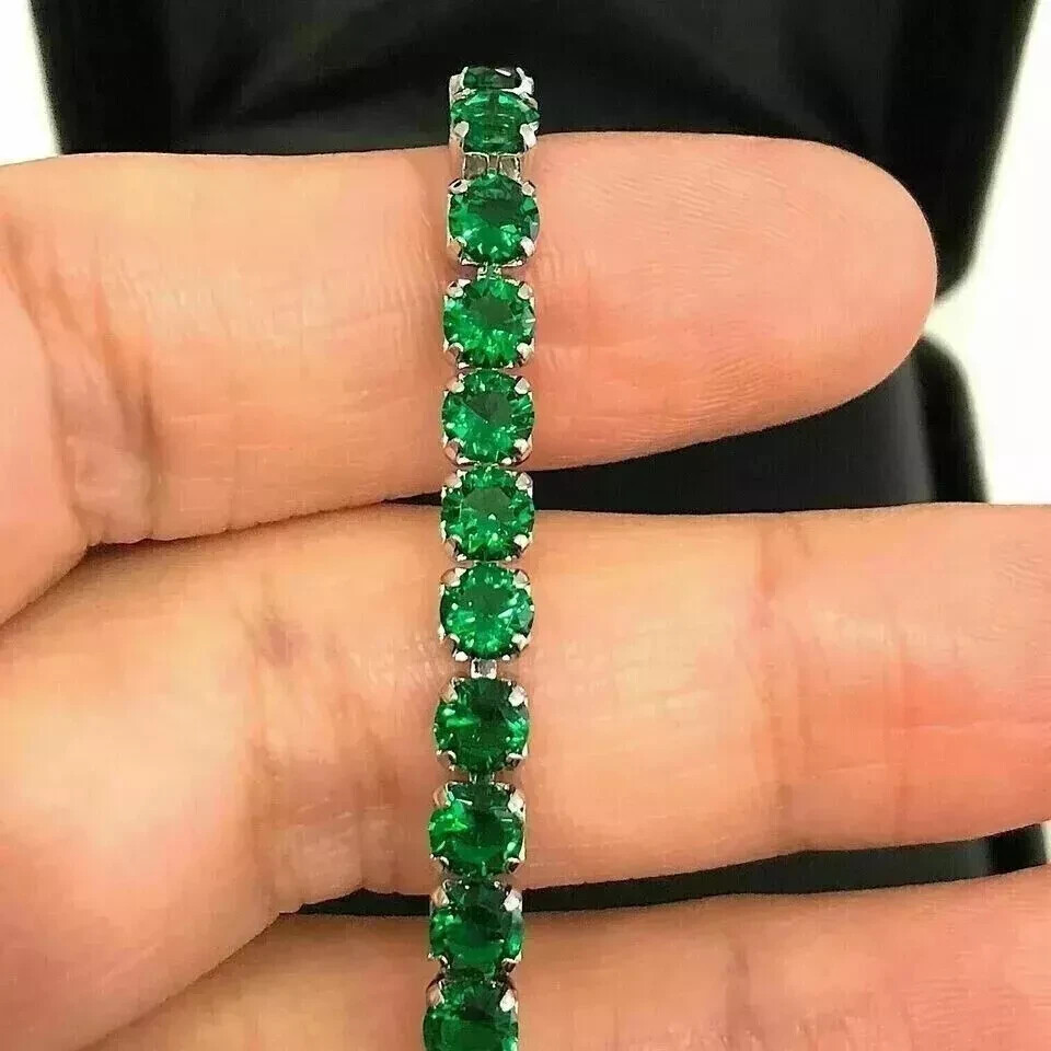 15CT Emerald Round Cut Lab Created Diamond Tennis Bracelet 14K White Gold Plated