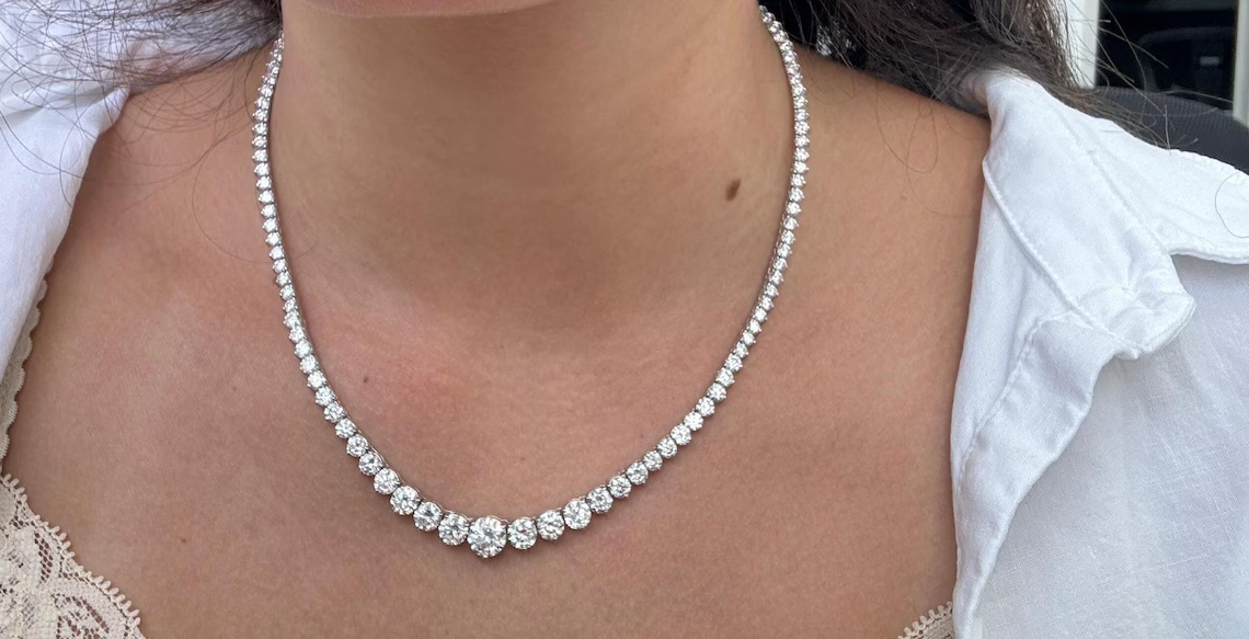 $ 198.5312CT Round Lab-Grown Diamond 3-Prong Tennis Necklace in 18 Inch 925 Sterling Silver