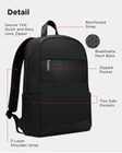Description The B500 is our versatile everyday backpack - a perfect blend of style, functionality, and durability. Boasting a spacious main compartment, it ensures ample storage for your daily essentials. The dedicated laptop and tablet pocket, padded with shock-absorbent foam, accommodates devices up to 15.6 inches, providing superior protection against scratches and impacts. Crafted from high-quality, water-resistant material, this backpack safeguards your belongings from unexpected spills and light rain. The main compartment zipper engages only when placed on the lock slot, ensuring the safety of your valuables. Designed with user comfort in mind, the backpack features breathable mesh on the back and shoulder straps. The 3-layer shoulder strap design promotes air circulation, ensuring all-day comfort. With multiple pockets and zippers, this backpack offers added organizational convenience. A reinforced strap ensures durability under rugged daily use, while the trolley strap allows easy integration with your luggage. Whether for work or casual use, our adjustable backpack is a reliable companion. Elevate your daily adventures with this meticulously designed backpack, where style meets functionality. Classic and Elegant: This adjustable backpack has breathable mesh incorporated into the back and shoulder straps, and a 3-layer shoulder strap design, promoting air circulation for all-day comfort. The soft, form-fitting straps and back mold to your body's contours, effectively reducing pressure during extended wear Form Meets Function: Designed with a lock zipper system, the main compartment zipper engages only when placed on the lock slot and pulled upwards, enhancing the security of your belongings. Multiple other pockets and zippers offer an added layer of protection Made to Travel with You: The B500 has a reinforced strap that can withstand daily rugged use, a trolley strap to easily slot-in and remove backpack on trolley handle, and an inconspicuous security pocket to store valuables, making it perfect for both work and casual consistent use Protection You Can Count On: Crafted from high-quality, water-resistant material, this backpack keeps your belongings safe from unexpected spills and light rain. The invisible external zippers provide further protection by improving water resistance Spacious Minimalist Design: This everyday backpack offers ample storage space - up to 15 liters in the main compartment. The laptop & tablet pocket has foam padding to protect from shocks and scratches, and fits up to a 15.6-inch laptop