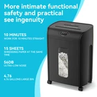 Product Features 【Ultra-Quiet&Durable for Office Use】Shredder for Office shredding paper with staples and credit cards (one at a time), receipts, bills and important documents. shredders for home office Shred paper cannot be recovered. 56 dB low noise provides a quiet and comfortable for Office use 【15-sheet Super Cross Cut】The Cross Cut Paper shredder shred Max15-sheet(at a time), no need to remove staples or clips. Also shreds credit card/junk mail. 【P-4 High Security Level】The Shredding cutter can shred paper into 4x38mm, Up to P-4 Security Level.can prevent 100% damages to shredder from paper jams and prolong its life span 【Convenient Design &10 Minutes Shredding】With 10minutes Non-Stop Shedding,overload operation of the Home shredder machine will Auto start overheating protection with 50 minutes cooling time. It include 3-mode control switches (FWD,Power and Auto reverse functions simplify shredding and paper jammed clearing processes 【Reliable Customer Service Support】Heavy duty shredder with 4.76Gallon pull out drawer bin that offer less frequent and easy emptying.Transparent window helps to see when it is full.