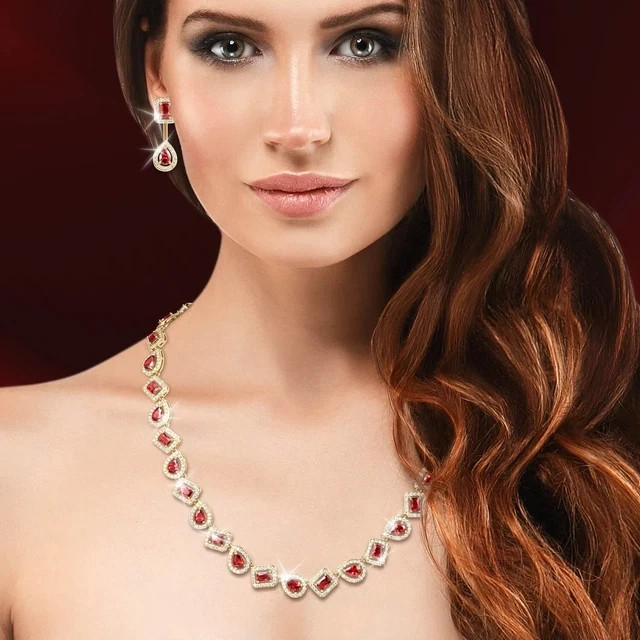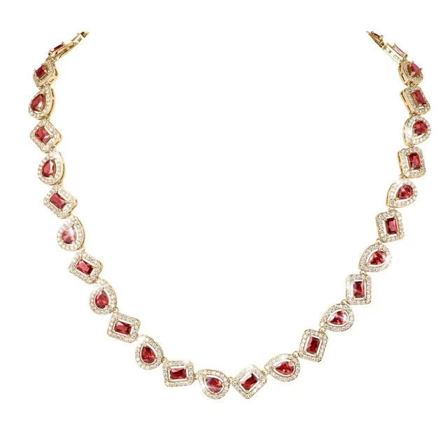 Absolutely love this elegant choker! The pear-cut lab-created rubies sparkle beautifully against the 14k gold plating, and the 18" length sits perfectly. The best part? Customization options let you make it uniquely yours—from metal changes to engraving. Great quality and stunning design!