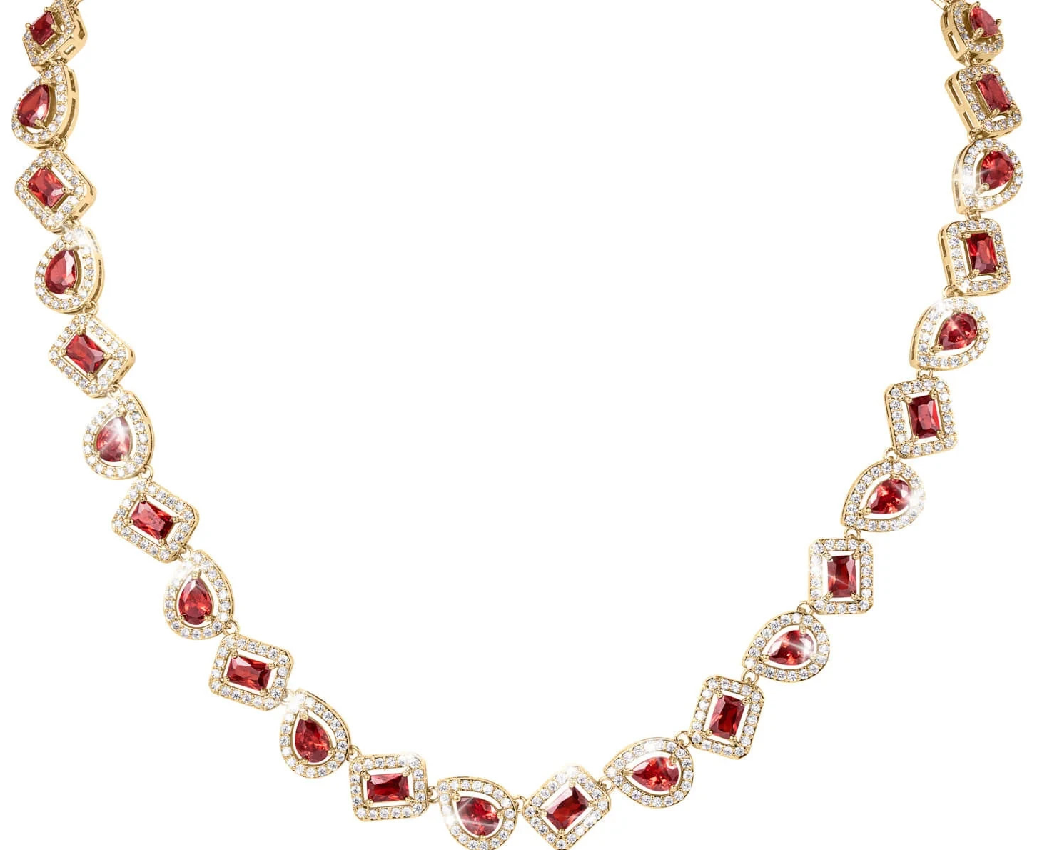 15ct Emerald Simulated Ruby Tennis Choker Necklace in 14k Rose Gold