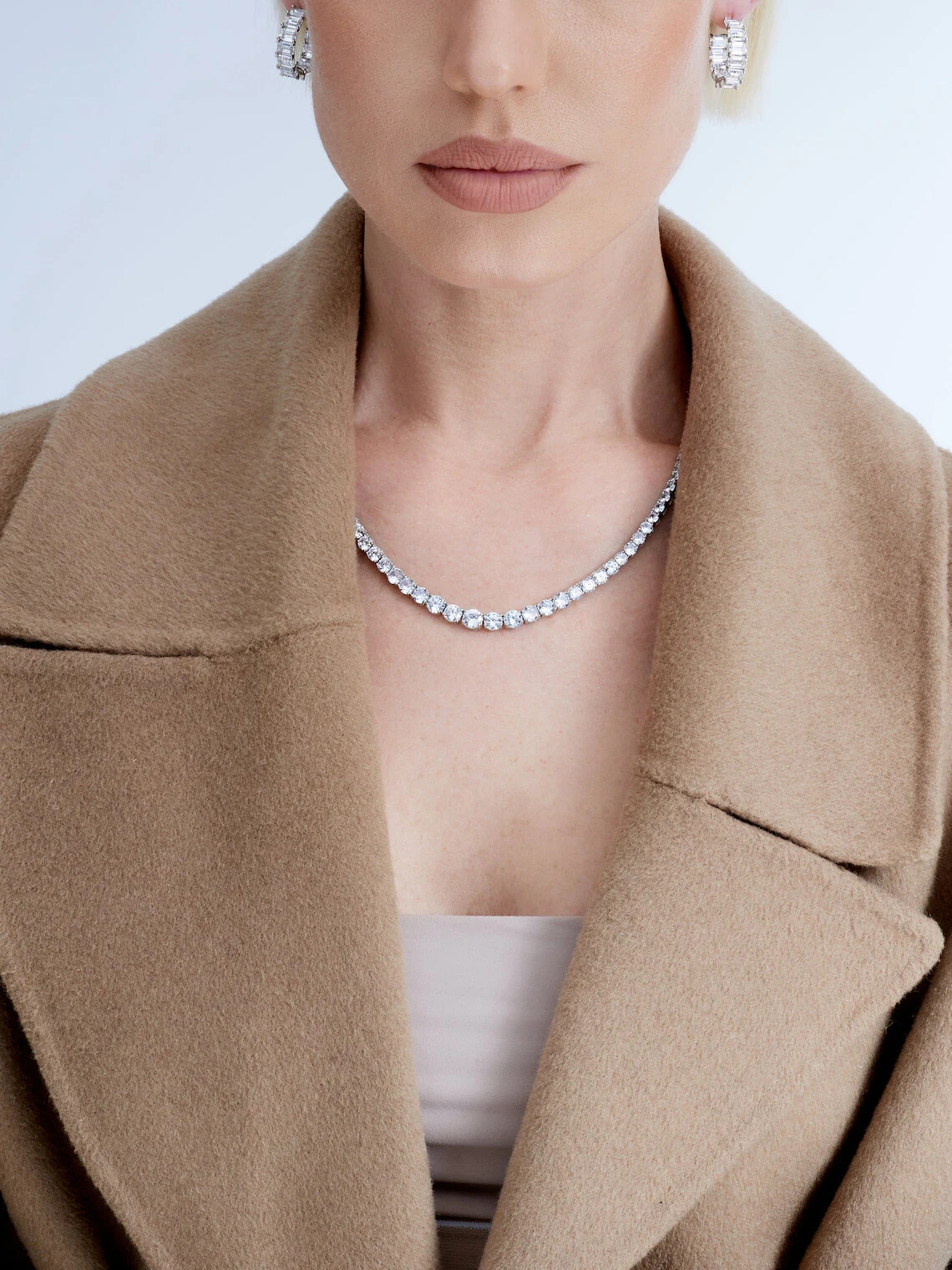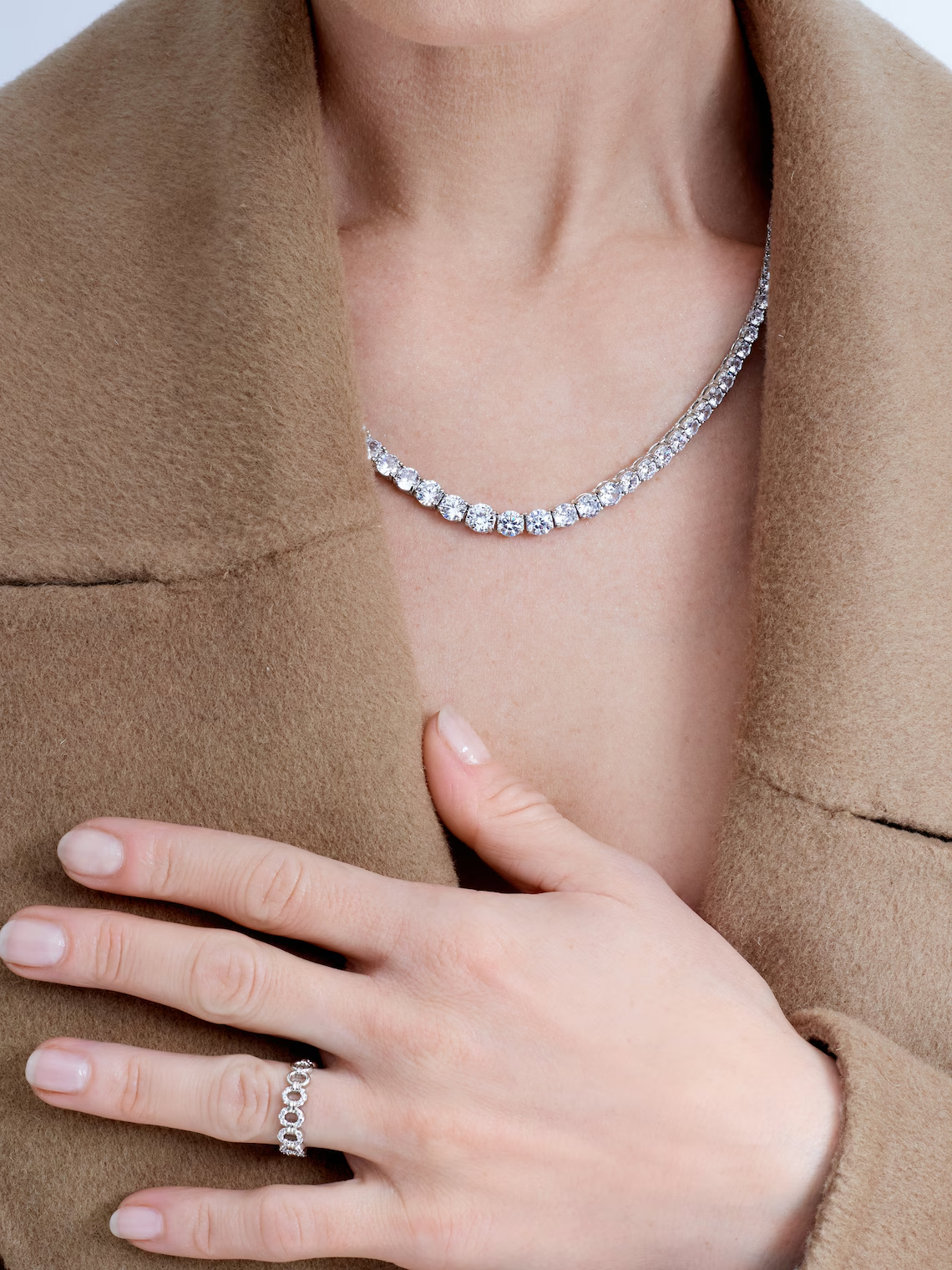 $ 190.08925 Silver 7CT Lab Diamond Graduated Tennis Necklace for Women 16 Inch