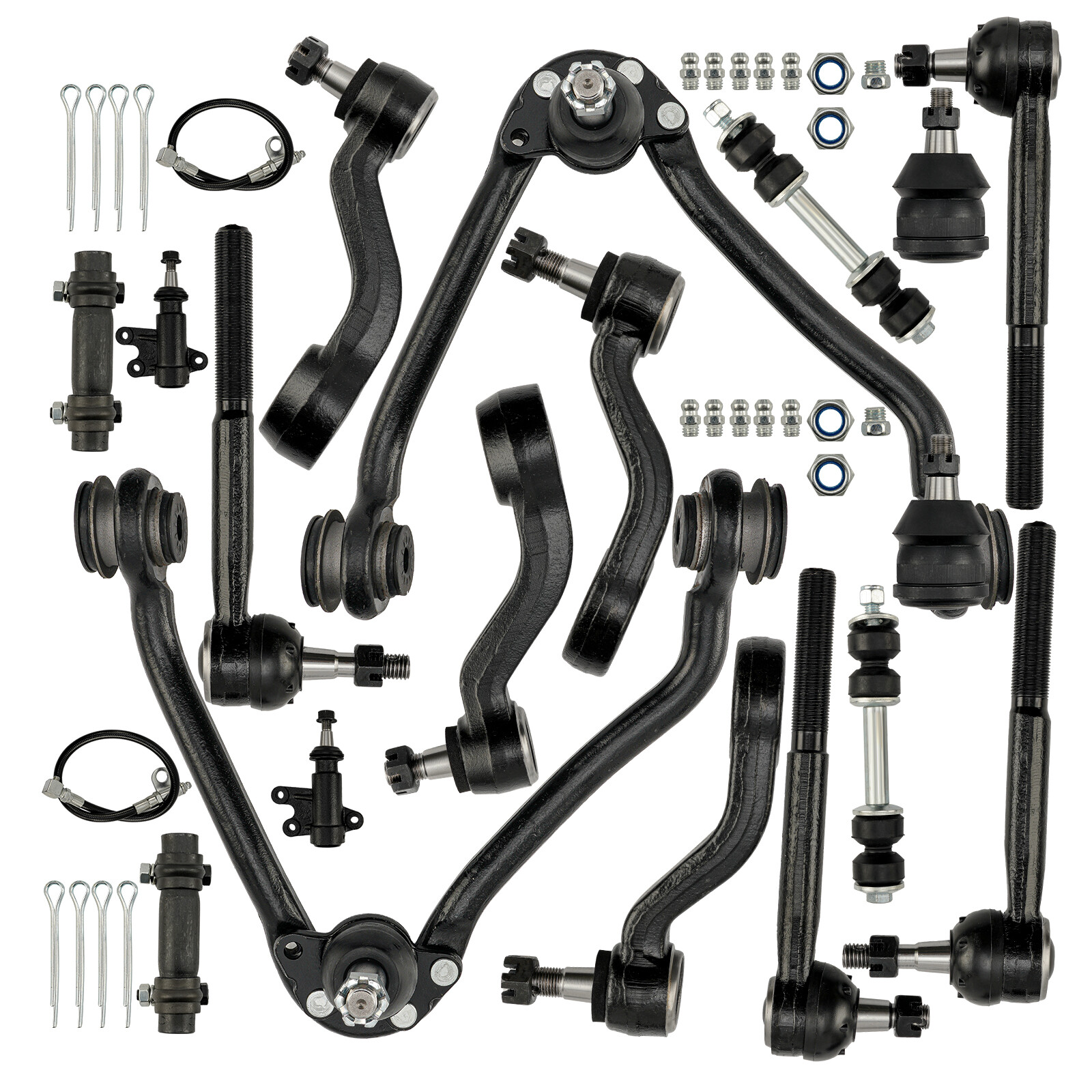 luck_autoparts Features Manufactured to strict standards using sturdy, safe materials that are thick enough, anti deformation, fracture. Deliver a flat-cornering feel and agile road handling. Added corrosion protection for longer service life. Bushings included for a complete installation, saving time and labor. Direct replacements for the aging control arms. Item Includes: 1x Front Upper Control Arm + Pre-Assembled Ball Joint (Driver) - K621233 1x Front Upper Control Arm + Pre-Assembled Ball Joint (Passenger) - K621234 2x Front Lower Ball Joint - K6445 2x Front Stabilizer / Sway Bar End Link - K5252 2x Front Outer Tie Rod End Link - ES2836 2x Front Inner Tie Rod End Link - ES2837 2x Tie Rod Adjusting Sleeve - ES2004 1x Steering Pitman Arm - K6335 1x Steering Idler Arm ( w/o Frame Bracket) - K6447 1x Idler Arm Bracket Assembly - K6722 Fitments: MAKE MODEL YEAR RANGE SPECIFIC DETAILS CHEVROLET C1500 SUBURBAN 1995 - 1999 6.5L Models CHEVROLET C2500 1993 - 2000 Models w/ 8600 GVW ONLY CHEVROLET C2500 SUBURBAN 1993 - 1999 Models w/ 8600 GVW ONLY CHEVROLET C3500 1993 Models w/ 8600 GVW ONLY; with Independent Front Suspension CHEVROLET C3500 1994 - 1996 Models w/ 8600 GVW ONLY; with Independent Front Suspension (5TH VIN DIGIT C) CHEVROLET C3500 1997 - 2000 Models w/ 8600 GVW ONLY; with Independent Front Suspension; Except Monobeam Axle GMC C1500 SUBURBAN 1995 - 1999 6.5L Models GMC C2500 1993 - 2000 Models w/ 8600 GVW ONLY GMC C2500 SUBURBAN 1993 - 1999 Models w/ 8600 GVW ONLY GMC C3500 1993 - 2000 Models w/ 8600 GVW ONLY with Independent Front Suspension (5TH VIN DIGIT C) Payment Shipping Return Policy Contact Us Important Points 1) we accepts all major credit cards via PayPal: MasterCard, Visa, American Express and Discover. 2) We will only ship to the confirmed PayPal shipping address given with the payment. Please make sure your PayPal and eBay address is correct. If not, please correct it before payment. Thank you. 3) If you want to ship to another address, please change your PayPal shipping address before you make payment. 4) To avoid initiating an unpaid item claim, please pay within 7 days. 5) Custom duties, taxes, or charges are not included in the cost you pay to us. We only ship this item to United States ! 1. We ship to your eBay address. Each package will be shipped by UPS or Fedex with tracking number. 2. Ship within 1 business day once payment completed. Orders placed on weekend will be shipped within 3 days. 4. Seriously promise: Refund or resend will be offered if item still not arrive in 7-10 business days. Just send us an email ,we will give you a satisfied solution as soon as possible. If you send us an e-mail, it will be answered within 48 hours during our working hours. Please feel free to contact us if you have any questions: Dear my friend,we appreciate your support.And our goal is service you well and give you a pleasant shopping time in our store. ✅Dear customer, when you want to return or exchange goods (Please contact us first, instead of directly initiating a dispute) 1: Contact the seller first 2: Send pictures: outer packaging&scanned labels&item itself&with complete accessories, etc necessary condition Rule A: The original packaging of the item is in an unused state. Rule B: The outer packaging must not have any damage. 3: Obtain return label 4: Delivered Projects - Payment Repayment ✅A 15% restocking and shelving fee will be charged for returns or exchanges that are not caused by the seller and are in good condition. Exchange will not charge restocking fees or shipping fees due to transportation errors ✅Priority In case of the following reasons, the freight will be borne by the buyer 1: Unexpected order 2: Find a better price 3: Change your mind 4: Buy more items/make mistakes/misread model information ✅Please note Missing accessories/quality issues/transportation damage, etc Please contact us first to obtain a good solution, rather than directly opening a return dispute. Thank you very much for your understanding. I hope we have a pleasant cooperation! Contact us if you have any question, Give us a chance to serve you, negative feedback could not solve anything, communication Please! ❎ (NO) Three stars is LOW star, NO 1,2,3 stars PLEASE! ✅(YES) Please give us Five-star! Have Question or Problem?? Step 1: Contact seller Step 2: Select the 1st topic: I have a question about using my item or I want to send the seller a message. NO others please! Step 3: Describe your question clearly; we will give you the best solution Please leave five stars positive feedback positive comment and Five-Stars. * We maintain a high standard of excellence (5 star rating) and strive for 100% customer satisfaction! * Feedback is very important to us. * We would like you to contact us immediately before giving us neutral or negative feedback so that we can address your concerns to our satisfaction. * If we don't understand these problems, we won't be able to solve them! * After understanding the problem, we will be able to give you a satisfactory answer! It's highly appreciated you leave us positive feedback and 5 star rating comments if you are satisfied with our service! Your comment is very important in our business success. Important Points ➡️ before Placing an Order, Be Sure to Check the Compatibility and Confirm That This Part Is Suitable for Your Vehicle. ➡️ to Confirm, Please Select a Vehicle from the "My Garage" List or Enter Your Vehicle Details Above to Ensure That Your Model Is Included in the Compatibility Table. ➡️ if You Encounter the Problem That You Can't Confirm Whether the Model Is Suitable, Please Contact Me. I Can Quickly Answer the Adaptability Problem for You. Thank You for Your Cooperation and Support! ✅ Ebay Compatible List Can Not Show up All Car Model, and Sometimes It May Have Mistake, and May Not 100% Accurate or out of Date. ✅ Please Check the Manual of Your Vehicle and Choose the Correct Good. ✅ If You Are Not Sure the Which 