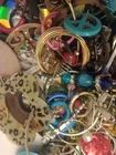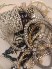 This lot consists of 16 pounds of mixed lot broken jewelry and scrap pieces, suitable for repairs, repurposing, or using for parts. The items included in the lot range from chains, necklaces, and bracelets, brooches, and single earrings. Additionally, there are various jewelry parts like broken jewelry with rhinestones, link chains, loose beads, and bangles that can be used creatively in crafting new pieces. This multicolor assortment of mixed materials offers a diverse selection for jewelry enthusiasts looking to breathe new life into damaged or unused items. 154/167/14