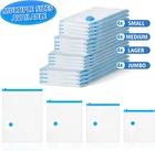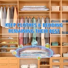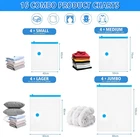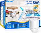 【Different Sizes Available】There are 4 sizes Warmi vacuum storage bags in 4 different sizes. 4 x Jumbo(80*100cm), 4 x Large(60*80cm), 4 x Medium(50*70cm), 4 x Small(40*60cm)+ 1 x Electric Pump. The set you can store a large amount of your different sizes out-of-season clothing. 【Electric Pumps Free up Hands】Unlike manual air pumps, Warmi vacuum compression bags set is equipped with an electric air pump. They can makes it easier and faster to pump the air out, saving your time and freeing your hands. 【Save More Storage Space 】Warmi vacuum storage bags set save up to 80% extra space to use and find the right size to pack up your quilts, blankets, duvets, clothes, pillows, bedding. 【Airtight & Waterproof 】Vacuum sealed bag with double zipper closure, airtight performance is much better, providing good sealing protection. Also have the good performance to prevent bacterial growth, dust, moisture, discoloration. 【Quality Assurance and After-Sales Service】 Our vacuum bags are thicker and more durable compared to others. Warmi vacuum storage bags package your satisfaction. If the product is broken or leaking, please contact us and we will replace it for you free of charge. Product Description Why choose WARMI Vacuum Storage Bags? Free up Hands, Airtight & Durable Warmi vacuum compression bags set is equipped with an electric air pump. They can make it easier and faster to pump the air out, saving you time and freeing your hands. Vacuum-sealed bag with double zipper closure, airtight performance is much better, providing good sealing protection. Made of heavy-duty plastic and a double-zip seal, our vacuum bags can withstand more stretching and folding. They can perform well for long-term use. Find Your Perfect Set How to Use Set 4 Packs 3 Packs 6 Packs 7 Packs Application Wardrobe/closet Organiser Sock/Underwear Organisation Underwear/Clothes Organisation Travel
