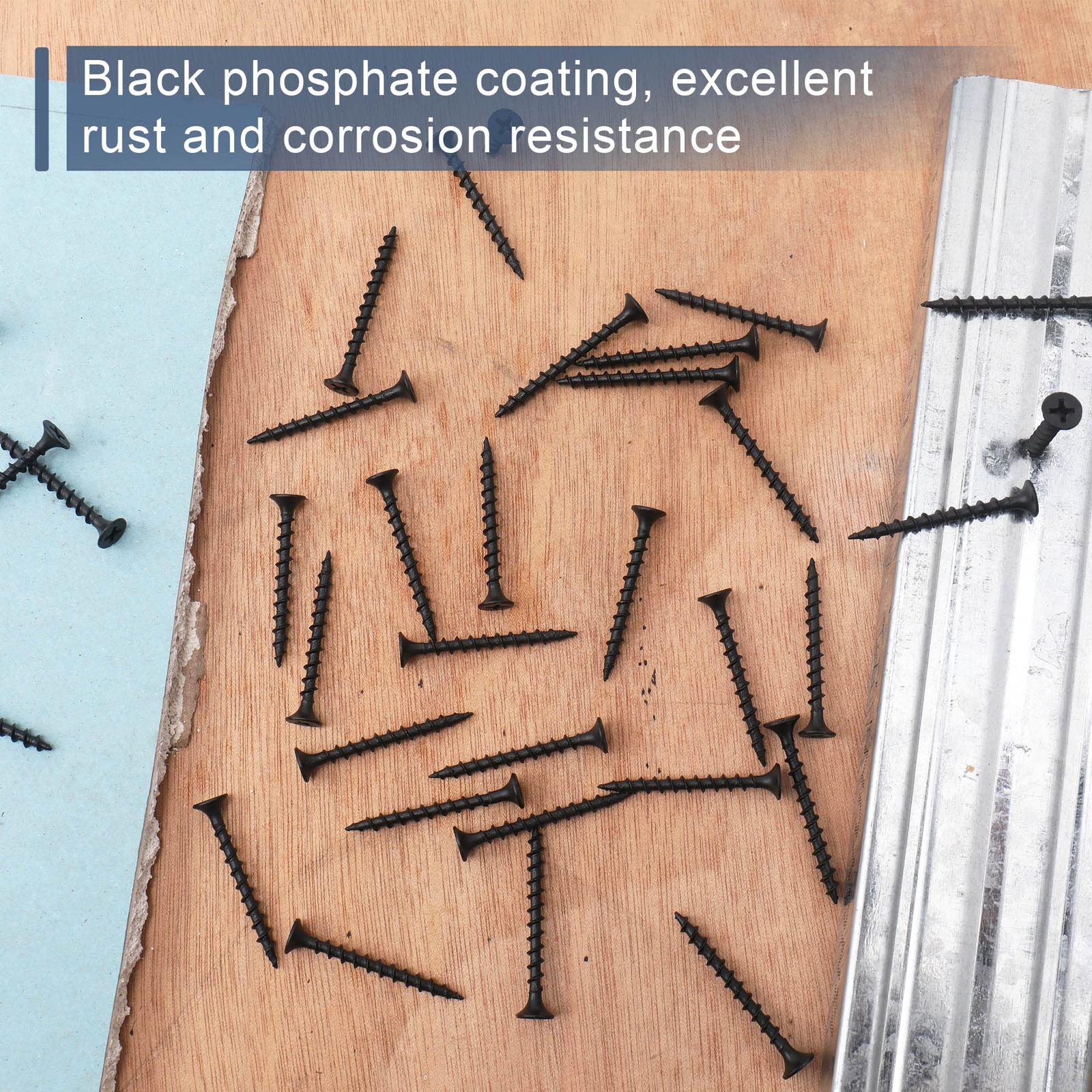 160pcs #6 × 1-1/2 inch High Hardness Drywall Screws, Black, Coarse Thread, Phillips Drive, Bugle Head, Black Wood Screws, Wood and More (1-1/2 in, 160) Include: #6 x 1-1/2” drywall screw, 160 pieces per pack. Material: Made of high hardness 1022A carbon steel to provide strong durability and finished in rustproof black phosphate coating. Workmanship: Adopting heat treated and high-precise cutting technology, the screw thread is very sharp and clear. Application: Apply to use with various projects, mainly connect between material like plank, gypsum board, composite board, soft metal, plastic. And easy to install with only a few simple tools. Ensure secure holding, not easy to slide when using. Warm Prompt: It is recommended to cover the lid after use to slow down oxidation. 【Specifications】 Quantity: 160 PCS Material: AISI 1022a Carbon Steel Color: Black Finish: Black Phosphate Head Style: Bugle Head Drive Style: Phillips Sizes: Length➤38mm (1-1/2inch) Diameter➤3.5mm (#6) 【Package Included】 160 x 1-1/2In black screws for wood 1 x Plastic bag 【Feature】 1. Meticulous workmanship: Finished in a black phosphate coating, excellent corrosion resistance and abrasion resistance, even withstand 48 hours salt spray testing. Adopting heat treated and high-precise cutting technology, the coarse screw thread is very clear and deep. 2. Reliable material: Superior material is very sturdy and not deform or break under normal use. Sharp point easily penetrates the wood. These self-tapping black wood screws are non-toxic, mercury free and environmentally friendly. 3. Single size packing, enough meets your long-term use needs. We list in US sizes and Metric (short screws, small wood screws) for your convenience. The packaging is also portative. 4. Easy to install with only a few simple tools, can be driven by phillips screwdriver or electric drill. The scientific screw twist angle allows you to drive them fast and to complete your project labor-saving. Designed for use with a variety of projects, like home furniture fasteners, other maintenance work, DIY arts and craft, home improvement, concrete screws, pocket hole screws, drywall screws, mounting screws. 【Note】 a) Please confirm the size before purchase. b) It is not recommended to store the drywall nails in a humid place. c) This item contains sharp point and small parts, please keep it away from children and babies for the sake of safety. Shipping We offer FREE shipping on all orders! We ship within Three business days of payment, usually sooner. We use a selection of shipping services such as UPS, FedEx, USPS etc. We only ship to the lower 48 states, no APO/FPO addresses or PO Boxes allowed. Local pickups and combined shipping options are not provided at this time. Return You can return a product for up to 30 days from the date you purchased it. Any product you return must be in the same condition you received it and in the original packaging. Please keep the receipt. Payment We accept payment by any of the following methods: PayPal Please pay as soon as possible after winning an auction, as that will allow us to post your item to you sooner! Feedback Customer satisfaction is very important to us. If you have any problem with your order, please contact us and we will do our best to make you satisfied. Contact Us If you have any queries, please contact us via ebay. We usually respond within 24 hours on weekdays. Please visit our eBay store to check out other items for sale! Thank you for shopping at our store.