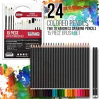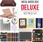 Product Dimensions 10.25"D x 11.7"W x 6"H Material Wood Style Compact About this item A complete premium quality professional 163-piece mega deluxe art creativity artist painting, sketching, and drawing set that contains everything an artist needs to create their masterpieces! Aspiring artists, art students, and professional artists love using this fun, safe, and easy-to-use art painting and drawing set! This set makes an excellent gift for birthdays and holidays. This set includes an incredible 142-piece art set in a wooden case and storage drawer containing 24 premium professional-grade watercolor paint color cakes, 3 mixing trays, 2 two camel hair brushes, 24 premium oil pastel colors, 24 premium colored pencils, 60 premium wax crayons, 2 - 2B graphite pencils, pencil sharpener, eraser, and a ruler. This unique creativity set also comes with 20 additional pieces; a 24 sheet 9" x 12" watercolor painting paper pad, a 30 sheet 9"x 12" premium sketch paper pad, an 80 sheet 5.5" x 8.5" premium hardbound field sketchbook, 15 premium paintbrushes, a plastic painting palette, and a double-sided color mixing wheel. Set also includes a professional Solana Beechwood solid tabletop desk easel that has a storage drawer with three compartments to organize paints, brushes, tools, and other essential art supplies. The easel can be adjusted to four different angle positions and accommodates canvas art and prints up to 11" by 14". Easel measures 13.25" wide by 10.25" deep by 2" high and adjusts to 11" high. The easel includes a wooden painting palette. Beginning artists will appreciate this supply-packed, comprehensive set. Whether working in colored pencil, oil pastel, watercolor, or with a traditional drawing pencil and crayon, everything you need is inclu ded. All the sets components are fully organized within the compartments of a beautiful wooden storage and carrying case. Color Black Product Dimensions 10.25"D x 11.7"W x 6"H Material Wood Style Compact Assembly Required No UPC 848849009934 Number of Items 163 Easel Type Single Mast Easel