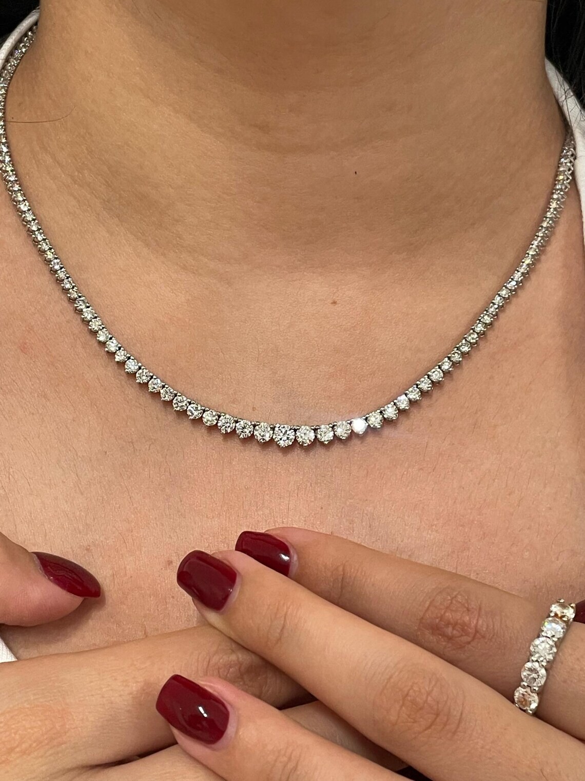 Free eBay listing template designed by dewiso.com Pot of Jewels 16CT Round Three Prong Lab Created Diamond 18" Tennis Necklace 14K White Gold FN 925 Sterling Silver Solitaire Tennis Necklace for women men Welcome to Pot of Jewels Buy With Confidence from A Trusted Seller Note to buyer All International buyers are responsible for all tax, duties and customs fees. The images uploaded will not match exactly with the Original products as the images are Photoshop. **What is 925 sterling silver?** 925 silver means the silver have 92.5% Pure silver in it. no matter hardness, shine, antioxidation is the most Reasonable content, Is the international recognized High quality Jewelry. **Why the 925 silver jewelry will become black after wear a long time? Silver and the sulfur in the air have a react if not protect well. (no water is better). Silver and the toxin in your body have a react be black. **How to handle the black silver jewelry? Use silver clothing to clear it.--the best and good way, No water is the better. ** Why some 925 silver jewelry plated 18K White Gold? To protect the silver color loss color and make the jewelry looks more shine and bright. Special Care The White/Yellow/Rose/Black Gold Plating on this item can be effected by many elements. We advise removing this ring when being exposed to any type of substance or chemical. This includes, but not limited to: perfume, hairspray, water, lotions, cleaning products, etc. Payment :- We accept payment via Payoneer only. You can also pay using your credit card, via Payoneer, by using Payoneer as a guest. Payment is required within 3 days of the sale of an item. Shipping:- Orders are shipped within 5 to 7 business days after the payment is received and the size of the products (if any). We will send you an email to confirm the outgoing date and give you the estimated arrival date at your address. Please note that if you pay for expedited shipping, the handling time for the order is stands 5 to 7 business days. Whenever the item ships, It will ship by the expedited service, if you have paid for it. Business days do not include Saturdays, Sundays and Federal Holidays. Terms of Sale For Returns - We offer an unconditional, no questions asked 100% money back policy for a maximum period of 30 Days, starting from the day you have received the item. If you find the product damaged or not as described on the listing, we are happy to refund your payment once we received the item. It is that simple! The only condition is that the item must be returned unused, unchanged, undamaged and including the complete packaging, documentation, tags, etc. Shipping charges are not refundable. Buyers pay the return shipping Exchange option is not available. About US We cater to Domestic as well as International clients with equal ease. Our first and foremost concern is quality that we provide to our customers. We have a dedicated team of craftsmen’s whose perseverance and hard-work maintains the quality required for Gold, Silver, Alloy and Brass jewelry by our customers. We can manufacture Silver with Moissanite products as well as Silver-CZ products with equal ease. We have state of art machinery to match the customer’s quality requirement. We prepare product on orders basis and delivery is on time. Contact US If you have any questions, concerns or inquiries about this item or any other item listed on Pot of Jewels Brand please contact us through the ebay messaging system. We answer all messages within 48 hours, usually earlier. Feedback We request our valued customers to leave us a feedback once satisfied with the transaction as we are always depending on reviews from you and always need your assistance. We also request you to contact us for any kind of issues before leaving a negative or neutral feedback after the transaction. We will try our absolute best to resolve any problems that you may have. Please contact us through the ebay. If you are satisfied with our item and services, please leave us a Positive Feedback with a 5-star (*****) on the ebay Detailed Seller Rating system, which will help us to serve you better. Thank You & Visit Again !!