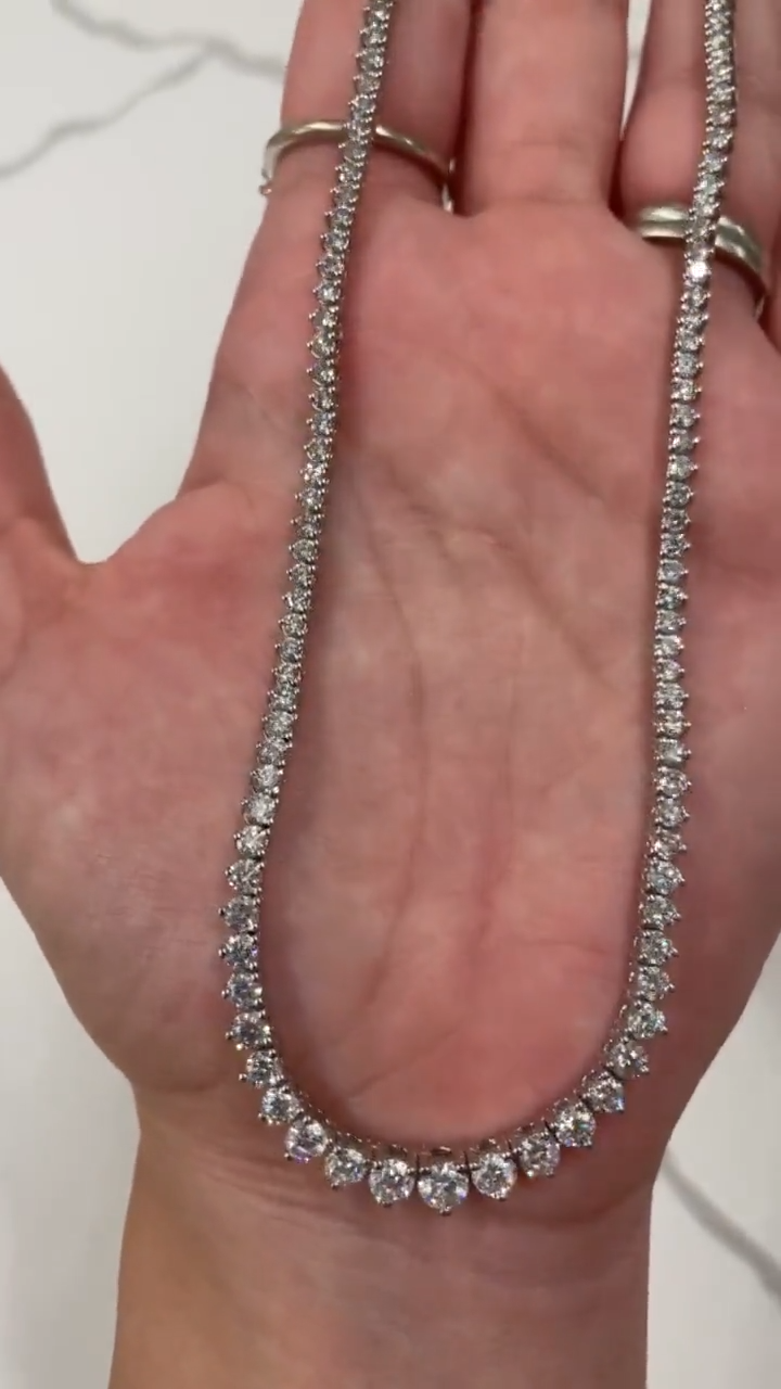 12CT Round Lab-Grown Diamond 3-Prong Tennis Necklace in 18 Inch 925 Sterling Silver