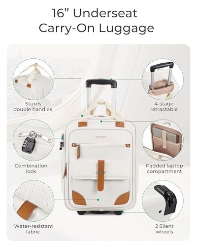 This 16-inch underseat carry-on is a game-changer for quick trips! The lightweight design glides smoothly, fits perfectly under airplane seats, and the softside material expands just enough for essentials. Love the chic beige color and stylish details—feels premium without being bulky. Super convenient for business trips or weekend getaways, and the wheels roll effortlessly. Fast shipping and trusted seller make it even better. Highly recommend for hassle-free travel!