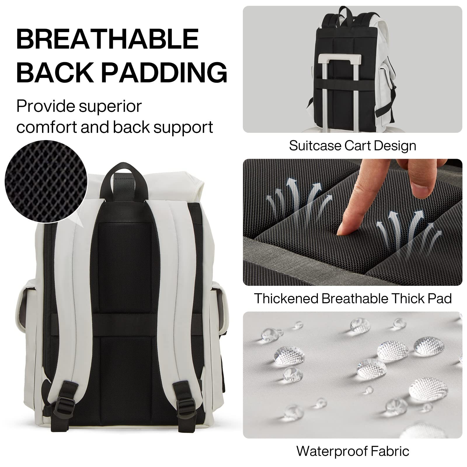 【LARGE CAPACITY & WELL ORGANIZED】Portable flip design allows you to pick up items quickly, backpack has a spacious main compartment to store lots 3-5 pieces of clothes, several books, so many other items. Independent laptop compartment holds laptops up to 16inches and under(can be opened from top or side more convenient). Double side pockets with cover and adjustable buckle for small items, such as keys, tissues, power banks. 【DURABLE】The backpack is made with high quality tear and water resistant material, provides extra strength and long-lasting performance with the lightest weight possible. YKK zipper is smooth and durable for a longer usage time. 【ERGONOMIC DESIGN】Ergonomic S-shaped shoulder filled with rich honeycomb sponges, offering ultra comfy and a good ventilation system.(Tips:It's very easy to clean with damp sponge or cloth when dirty.) 【ELASTIC LUGGAGE STRAP】This business backpack come with an elastic luggage strap that allow backpack slide over the luggage handle. It relieves all the strain of carrying a heavy backpack bag while traveling when your shoulders need a break. 【MULTIPURPOSE】Stylish laptop backpack suit woman/man, Commuter, Travel, Business Trip, etc,. Strict producing process and QC standard ensure this travel bag’s high quality performance. Customers satisfaction is our biggest pursuit.