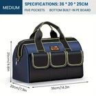 16"/14"/12" Wide Mouth Tool Bag Black Tool Storage Tote with Rubber Base Description • High Capacity Storage : The AIRAJ Multifunctional Tool Bags have a high capacity storage, allowing you to store all your tools and equipment in one place. • Waterproof and Wear-Resistant : Made of 1680D Oxford Cloth, these bags are waterproof and wear-resistant, ensuring that your tools and equipment stay safe and dry. • Multifunctional : These bags are multifunctional, making them perfect for electricians, mechanics, and other professionals who need to carry a variety of tools and equipment. • Customizable : The AIRAJ Multifunctional Tool Bags are customizable, allowing you to add your own labels and organize your tools and equipment in a way that makes sense to you. Size: 13 inch simple:31*23*17cm 16 inch simple:36*24*19cm 18 inch simple:42*26*23cm 14 inch classic:33*23*20cm 17 inch classic:36*25*20cm 17 inch rubber:36*26*20cm Package 13 inch simple/16 inch simple/18 inch simple : Tool Bag * 1 Chinese 14 inch classic Tool Bag * 1 + Parts box * 1