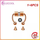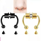1~6PCS Stainless Steel Magnet Nose Ring Horseshoe Ring Nose Clip Non-pierced Nose Hoop Magnetic Nose Nail piercing nariz Description: 【Stainless steel】 These fake nose rings are made of high quality 316L stainless steel, are hypoallergenic, nickel-free and lead-free. They are safe to wear and do not harm your skin. They have a highly polished, smooth surface and are easy to wear and take off. 【Unique design】 These fake nose horseshoe rings are so cool and charming that you will be attractive in the crowd. Do not worry about the magnetic force, they are comfortable enough to be worn all and do not fall off easily. 【Available sizes】: (1.2mm); Inner Diameter: 10mm (3/8); Ball Size: 3mm, Replacement Tip Size: 3mm 【Great gift】 Ideal gift for horseshoe rings with false nose for your wife, husband, daughter, friends on birthdays, anniversaries, Valentine's Day, Mother's Day, etc. Popular artificial nose rings for women, surprise gift for her, to remind the special of how much you care. 【Frequent occasions】 You can coordinate these non-penetrating fake septum rings with your clothes for daily wear and work. They are also suitable for other occasions such as party, dinner, travel etc. Just show your own style and make you shine. Specifications: 【Name】:Stainless steel nose ring 【Color】: silver, black, color, gold, rose gold, blue (customized) 【Size】: Steel ball 3mm sharp cone 3mm The distance between the two balls is about 10mm (there is a slight error in manual measurement, subject to the actual distance) 【Weight】: 1.8g/piece 【Packing】: opp independent packaging Package Included: 1*Nose ring 2*Steel cone