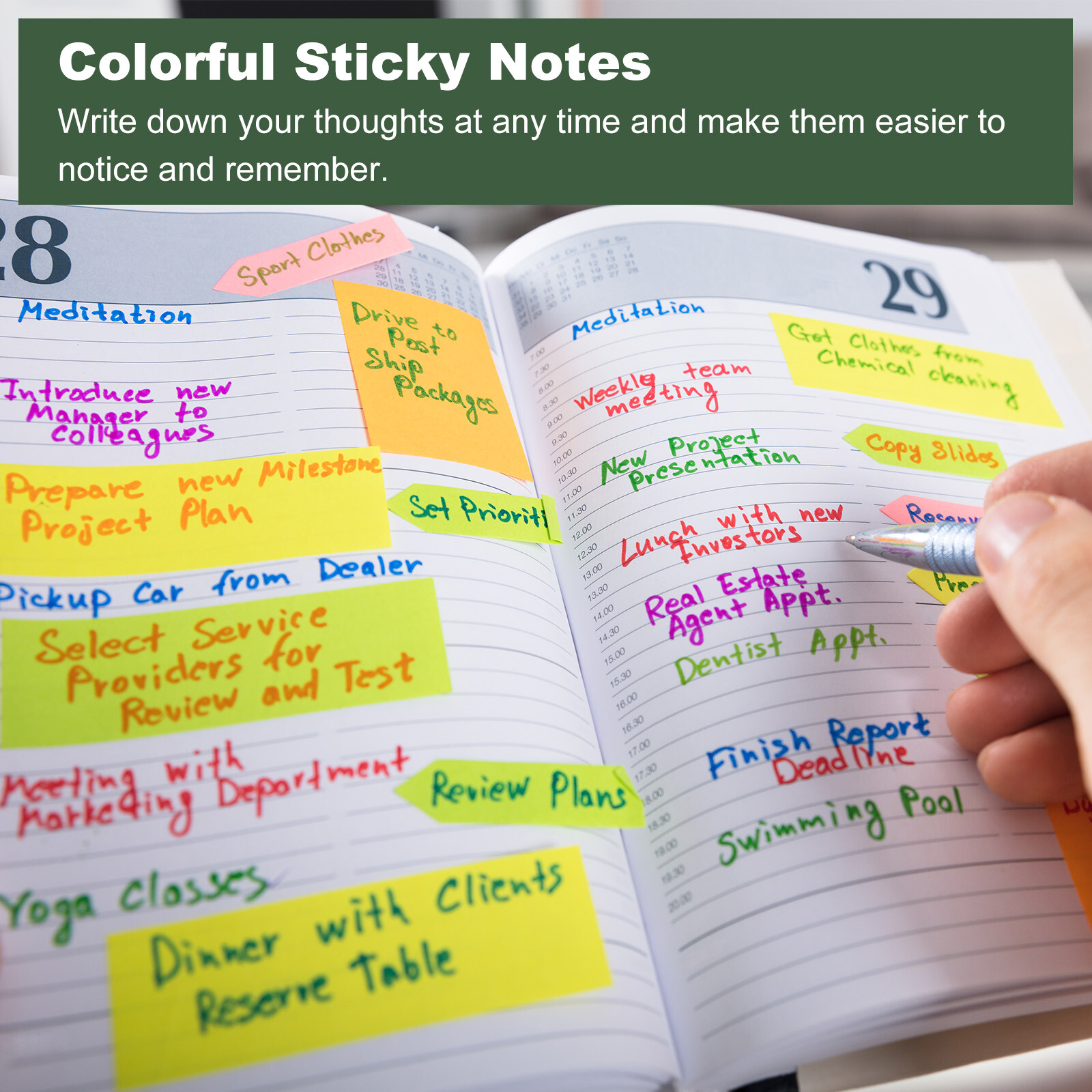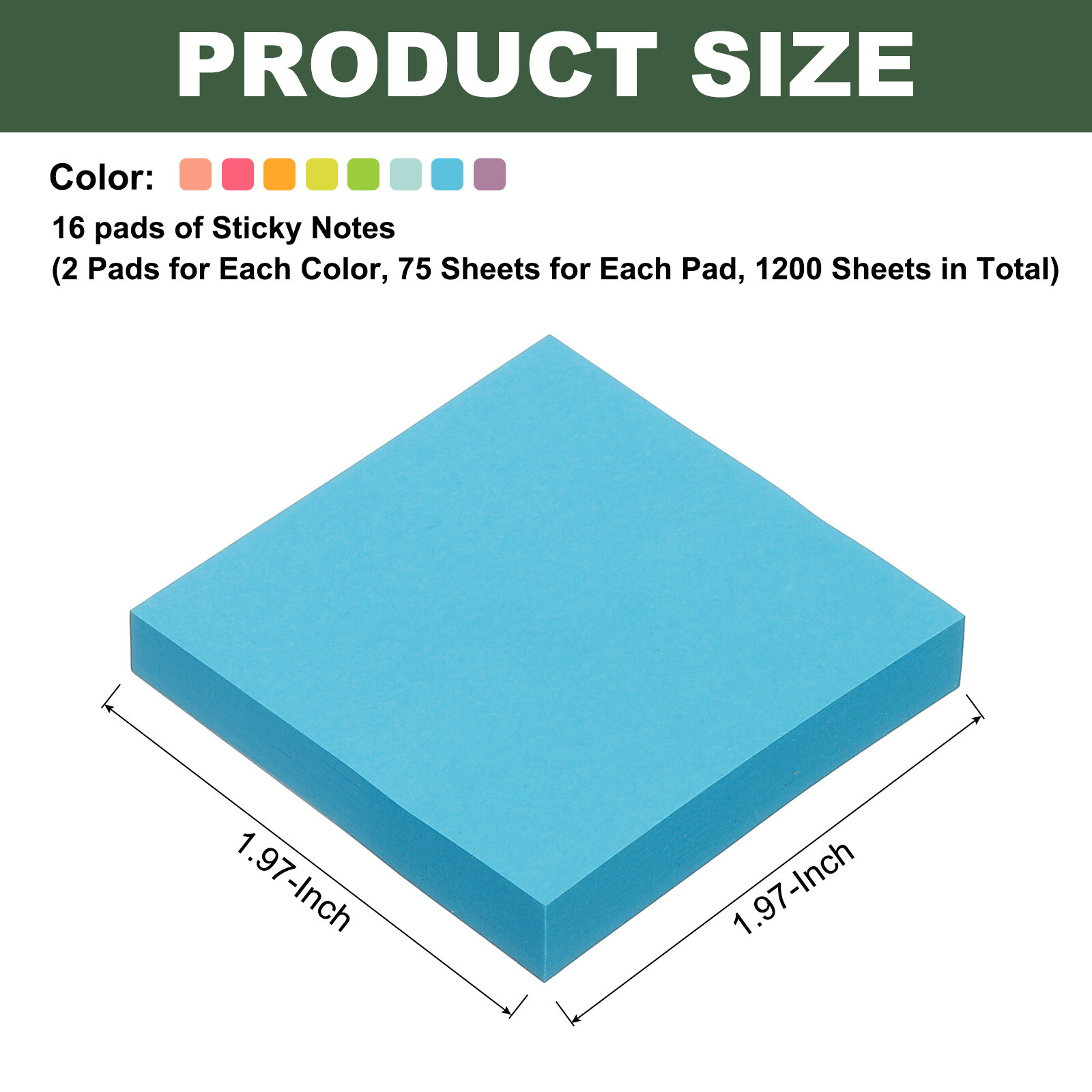Document MULTIPURPOSE - Small sticky notes can be used as message reminders, memos, to-do lists, record things, and organize notes, suitable for office and home. Sticky notes can be pasted on walls, doors, laptops, books, desks, refrigerators, blackboards, and most smooth surfaces.WHAT YOU GET - The package comes with 16 pads of Sticky Notes (2 Pads for Each Color, 75 Sheets for Each Pad, 1200 Sheets in Total). The Size of the note is 50 x 50mm / 1.97 x 1.97inch (L x W). These sticky notes come in 8 colors: Rose Red/Red/Pink/Orange/Yellow/Green/Light Blue/Blue/Purple.RELIABLE MATERIAL - The sticky notes have strong stickiness, are not easy to fall off, will not damage the surface or leave a sticky residue, and can be reused. The colorful stickers make writing smooth and clear, and the hard paper will not tear, curl, or spill ink easily.SPECIAL DESIGNED - Our sticky notes are available in a variety of quantities to meet your daily use and replacement needs. These small sticky notes come in different bright candy colors, and you can choose the color of the sticky notes every day according to your mood. Our mini sticky notes are small in size, light in weight, easy to store, and won't take up too much space, so you can put them in your pocket or bag when you go out, helping you write down your thoughts instantly.KINDLY NOTE - Gently lift the sticky note from the middle of the bottom edge and pull it towards you, away from the sticky edge in a straight line, and then stick it to the smooth surface you want it to. Pulling it diagonally upward from the bottom corner of the sticky note may cause the pulled sticky note to bend and curl. 16 Pads Small Sticky Notes, 2 x 2 Inches Mini Self Stick Note MULTIPURPOSE - Small sticky notes can be used as message reminders, memos, to-do lists, record things, and organize notes, suitable for office and home. Sticky notes can be pasted on walls, doors, laptops, books, desks, refrigerators, blackboards, and most smooth surfaces. WHAT YOU GET - The package comes with 16 pads of Sticky Notes (2 Pads for Each Color, 75 Sheets for Each Pad, 1200 Sheets in Total). The Size of the note is 50 x 50mm / 1.97 x 1.97inch (L x W). These sticky notes come in 8 colors: Rose Red/Red/Pink/Orange/Yellow/Green/Light Blue/Blue/Purple. RELIABLE MATERIAL - The sticky notes have strong stickiness, are not easy to fall off, will not damage the surface or leave a sticky residue, and can be reused. The colorful stickers make writing smooth and clear, and the hard paper will not tear, curl, or spill ink easily. SPECIAL DESIGNED - Our sticky notes are available in a variety of quantities to meet your daily use and replacement needs. These small sticky notes come in different bright candy colors, and you can choose the color of the sticky notes every day according to your mood. Our mini sticky notes are small in size, light in weight, easy to store, and won't take up too much space, so you can put them in your pocket or bag when you go out, helping you write down your thoughts instantly. KINDLY NOTE - Gently lift the sticky note from the middle of the bottom edge and pull it towards you, away from the sticky edge in a straight line, and then stick it to the smooth surface you want it to. Pulling it diagonally upward from the bottom corner of the sticky note may cause the pulled sticky note to bend and curl. Hot Item Payment 1.We accept eBay payment . 2.Payment must be received within 7 business days of auction closing. Shipping 1.We ship to your eBay or Paypal address. Please make sure your eBay and Paypal address is correct before you pay. 2.Items will be shipped within 1-3 business day when we received payment. 3.Delivery time depends on destination and other factors. Description Policy 16 Pads Small Sticky Notes, 2 x 2 Inches Mini Self Stick Note MULTIPURPOSE - Small sticky notes can be used as message reminders, memos, to-do lists, record things, and organize notes, suitable for office and home. Sticky notes can be pasted on walls, doors, laptops, books, desks, refrigerators, blackboards, and most smooth surfaces. WHAT YOU GET - The package comes with 16 pads of Sticky Notes (2 Pads for Each Color, 75 Sheets for Each Pad, 1200 Sheets in Total). The Size of the note is 50 x 50mm / 1.97 x 1.97inch (L x W). These sticky notes come in 8 colors: Rose Red/Red/Pink/Orange/Yellow/Green/Light Blue/Blue/Purple. RELIABLE MATERIAL - The sticky notes have strong stickiness, are not easy to fall off, will not damage the surface or leave a sticky residue, and can be reused. The colorful stickers make writing smooth and clear, and the hard paper will not tear, curl, or spill ink easily. SPECIAL DESIGNED - Our sticky notes are available in a variety of quantities to meet your daily use and replacement needs. These small sticky notes come in different bright candy colors, and you can choose the color of the sticky notes every day according to your mood. Our mini sticky notes are small in size, light in weight, easy to store, and won't take up too much space, so you can put them in your pocket or bag when you go out, helping you write down your thoughts instantly. KINDLY NOTE - Gently lift the sticky note from the middle of the bottom edge and pull it towards you, away from the sticky edge in a straight line, and then stick it to the smooth surface you want it to. Pulling it diagonally upward from the bottom corner of the sticky note may cause the pulled sticky note to bend and curl. Hot Item Payment 1.We accept eBay payment . 2.Payment must be received within 7 business days of auction closing. Shipping 1.We ship to your eBay or Paypal address. Please make sure your eBay and Paypal address is correct before you pay. 2.Items will be shipped within 1-3 business day when we received payment. 3.Delivery time depends on destination and other factors.