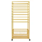 Specification Color: Gold Style: Modern Material: Iron Process: Baking Paint Assembly Required: Yes Mounting Type: Floor Standing Load-bearing Capacity: 22.68-36.29kg/50-80 lbs Overall Rack Width: 43cm/16.93in Product Size: 67*33*150cm/26.38*12.99*59.06in Package Size: 150*50*10cm/59.06*19.69*3.94in Gross Weight: 9.8kg/21.61 lbs Net Weight: 9.31kg/20.53 lbs 16-Tier Organizer Rack Storage Shelf Ribbon Display Rack W/ 4 Wheels 67*33*150cm Description This storage rack is made of premium materials and exquisite craftsmanship to ensure durability. 16 rods and a large-sized basket provide you with sufficient storage space to ensure that your items are well-organized and easily accessible. The detachable shelf design enhances flexibility for storing packaging paper and scarves of various lengths. We believe it can create a clean and tidy living environment for you! Key Features Build to Last: It is made of premium iron with a baking paint process, which is scratch-resistant, rust-resistant, wear-resistant , and sturdy, ensuring a long service life. Large Capacity: It is equipped with 16 rods, providing enough space for you to hang your ribbons, preventing them from getting tangled or wrinkled. In addition, the bottom grid storage basket provides additional space for storing harder packaging paper or other items, preventing extrusion and damage while making the space more tidy and orderly. Space-saving: It makes full use of vertical space and reduces the footprint, especially suitable for printing shops with limited space, effectively improving space utilization Adjustable Design: The unique built-in card slot design makes it easy to disassemble the rods and adjust the layer spacing, while also making it easy to access and store packaging paper, improving usability. Flexible Movement and Fixation: 4 universal wheels allow you to easily move it around, and the design with brakes helps you better secure it and improve its stability. Easy to Assemble : With complete accessories, a simple structure , and a detailed manual, you can assemble it quickly and easily and enjoy the fun of the assembly process. Labor-saving Cleaning: The smooth surface and open structure make it easy to clean, and you just need to wipe the surface dust with a cloth to keep it clean. Protective Package: To prevent the product from being damaged and bumped during transportation, we packed it with bubble bags and pearl cotton to protect your products to the maximum extent possible. Customer Service: We stand behind all our guests and look forward to assisting you with your purchase. It is our pleasure to answer your confusion and questions. The end of the story between us is not "we sell and you buy". Details Round Edges: The smooth edges without burrs make it not only more comfortable to use but also care for your skin and items. Sturdy Screws : They can make the bracket tightly connected and enhance the stability of use. Application It is suitable for various flower shops, clothing stores, gift shops, etc., and can be used to store colored packaging paper, scarves, towels, ribbons, fabrics, etc. Specification Color: Gold Style: Modern Material: Iron Process: Baking Paint Assembly Required: Yes Mounting Type: Floor Standing Load-bearing Capacity: 22.68-36.29kg/50-80 lbs Overall Rack Width: 43cm/16.93in Product Size: 67*33*150cm/26.38*12.99*59.06in Package Size: 150*50*10cm/59.06*19.69*3.94in Gross Weight: 9.8kg/21.61 lbs Net Weight: 9.31kg/20.53 lbs Package Included 1* Storage Rack 4* Wheels 1* English Manual Other Needed Accessories Notes Please note that this product does not include packaging paper , etc. Please check the product's size before purchasing to ensure that it meets your needs. Please allow the slight color difference caused by the shooting light and the 1-3 cm error due to manual measurement, and make sure you do not mind before ordering. Payment Delivery details Terms of sales About us Contact us Payment We accept ebay payment 。 Fees such as import duties, taxes are not included in the item price or shipping costs. These charges are the buyer's responsibility. Delivery details Shipping: 2-9 working days to: USA Terms of sales We maintain high standards of excellence and strive for hundred percent customer satisfaction. Feedback is very important to us. We hope that you contact us immediately before you give neutral or negative feedback, so that we can address your concerns. It is impossible to address issues if we do not know about them! About us Your satis faction is our ultimate goal. We work hard to earn your trust and future business. Our certified technicians have tested each item before shipping. The unit comes with 1 year limited warranty on all manufacturing defects. a) If you receive a defective item, you may return it or ask for a discount. Please contact us within 14 days after you receive the package. b) What you returned must be intact and in its original packaging as re? u. Customer is responsible for shipping costs of the returned item. c) We will cover the cost of shipping back t with the shipping rate indicated in the registration page. We will send you a new unit or refund the full payment you paid. Thank you. Contact us Business Hour Business Hour: Monday To Friday: 8:30 AM to 5:00 PM (Beijing China time) Due to time zones, our reply to your questions may not be immediately. But within above working time, we will reply your email within 24 hours. If it's non-workdays, please kindly be patient and wait till Monday. Please contact us with ebay message. Please feel free to contact us if you have any questions. Monday To Friday: 8:30 AM to 5:00 PM (Beijing China time) Due to time zones, our reply to your questions may not be immediately. But within above working time, we will reply your email within 24 hours. If it's non-workdays, please kindly be patient and wait till Monday. Please contact us with ebay message. Please feel free to contact us if you have any questions. * Feature * Fast ship