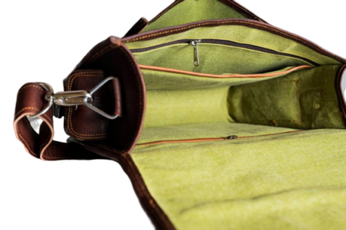 100% genuine goat leather messenger bag with a durable inner lining made of canvas. Designed to carry mini laptops, tab, documents or other personal belonging. A genuine hand made product using chemical/dye-free leather. Natural oils and light have been used to obtain the style of the leather - chemical free! This bag features a wonderful unique and vintage look, designed to carry mini laptops, tab, documents, personal belongings. Perfect for the office, school or as a gift! Specifications: Made from 100% genuine, strong, lightweight, durable goat leather, tanned without the use of chemicals Adjustable shoulder strap, half flap bag with strap lock & small front pocket. 3 big inner compartment for carrying tablet, smart phone's, tab's etc. 2 zipper compartments for important documents/paperwork etc. 1 pocket in front & 2 small pocket in side. Inner canvas lining Vintage leather wash Leather softens and darkens with use Handmade in India by experienced crafts people