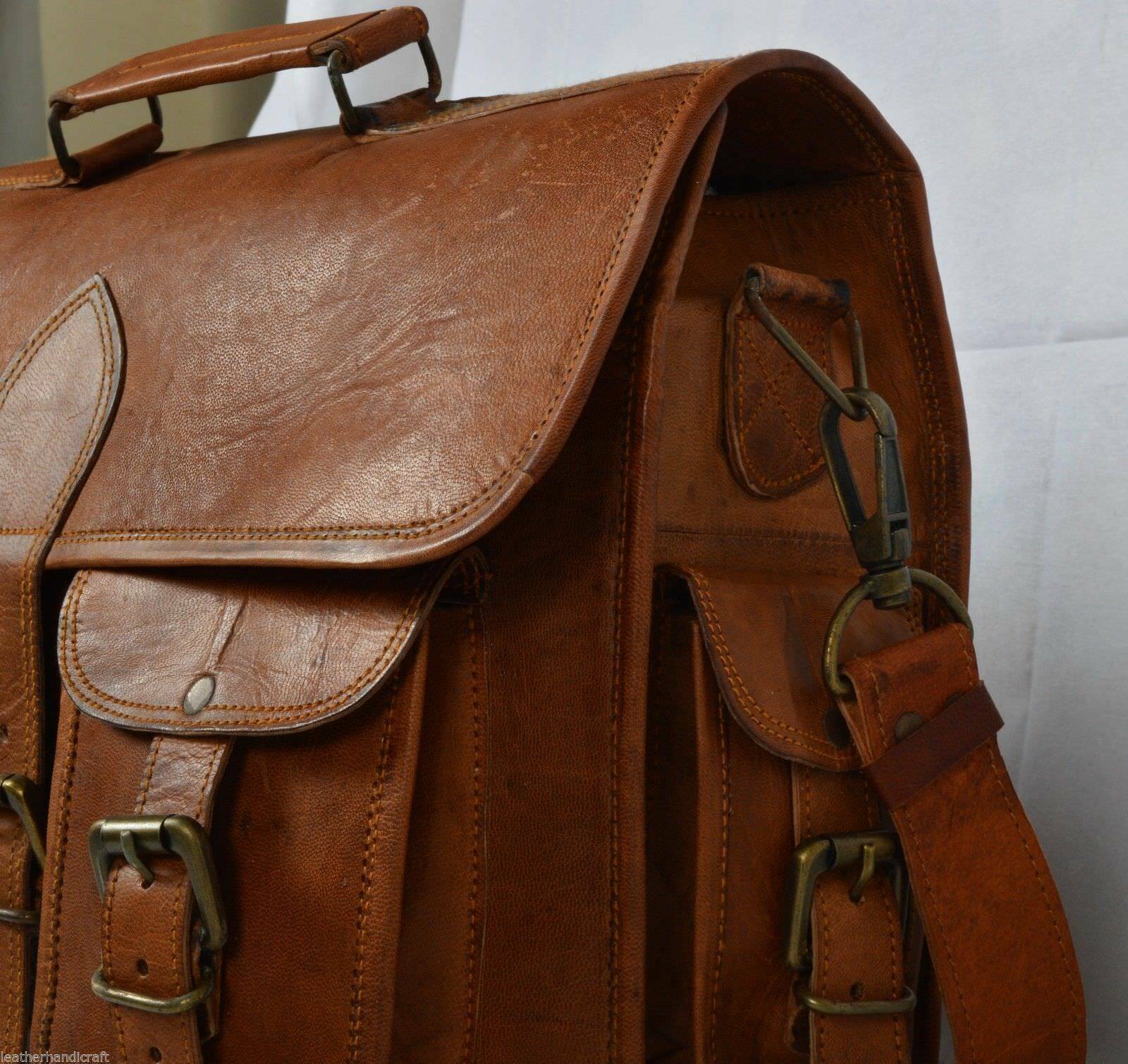 QUALITY LEATHER BAG Each bag is individually made using goat leather by experienced crafts people .The bag gets better and better with the time as the leather softens and deep-ens in color. The tonality color of each bag might vary in accordance with the low and high temperatures from the heart of The Thar desert.The leather does not receive any chemical treatment. On the bags a special vegetable oil is applied to give more tonality to the dominant brown (light and dark) color of the bag also making it more resistant to the water.Each bag has its charm and style and a very special earthy smell that will assure you it’s real leather.Its lightness, flexibility and durability will not make you regret your purchase. Note -: Each vintage leather bag is a totally natural and handmade product therefore there may be some variation came in the color and in the design or the textures to the different parts of a bag, which will create a wonderfully unique effect. Because of different craftsman and there may be small differences in the style, construction to the bags shown on the website. HANDMADE LEATHER BAG This bag features a wonderful unique and vintage look, designed to carry mini laptops, tab, documents, personal belongings , Gym & Travelling etc. Perfect for the Travelling , office, school or as a gift! Features Green canvas fabric used inside the bag. (See the picture for more detail) There may be color variation due to difference in resolution of the photo and the actual color Strong, light-weight goat leather, tanned without the use of chemicals Leather softens and darkens with use Color and texture of the leather varies Natural real leather smell, just like a luxury car or lounge suite Solid brass buckles and fixtures - will last for years Has a wonderful natural look, and feel Each bag is uniquely individual due to slight color and marking variations on natural leather. Payment Using Paypal is the simplest and easiest way to pay, and is the way we prefer, but if you have a reason that you don't want to use Paypal that's OK, we will accept credit card payments and bank deposits, please contact us to arrange these after purchasing. we know that you will want to get your goods sent quickly so please remember to make your payment quickly after purchase, and we will dispatch within one business day after you have made your payment. if you need a bit of time to make your payment, that's also ok, please contact us to advise how long you need, we are happy to hold your goods for up to week before you pay. if you are purchasing from overseas,please be aware that we can only accept Paypal. Shipping Please do provide your Full Address and Phone Number by eBay message immediately after making the payment for easy delivery. Please provide your telephone number as well, so that the post office can contact you when your item arrives, or the item will be sent back to us. We will not be able to resend the item in that case so please make sure to provide your contact number. Registered mail requires signature on delivery so please ensure that there is someone to receive the parcel on your address of delivery. If not look for a note from your local post office or contact your local post office within two weeks after you get a mail that your item has been shipped. We are not responsible for service transit time, which are provided by the carrier and may vary with the destination particularly during peak periods. Terms Of Sale Returns accepted Please write to us before returning the item Buyer should contact us within 30 days of receiving the item Refund will be given in refund or replacement on buyer's choice. Return shipping will be paid by the buyer Item must be returned in its original condition Please write to us for any clarification on RETURN POLICY THANKS FOR VISIT MY SHOP.