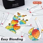172 Colors Dual Tip Alcohol Based Art Markers,171 Colors Plus 1 Blender Permanent Marker 1 Marker Pad with Case Perfect for Kids Adult Coloring Books Sketching and Card Making 172 COLORS + ACCESSORIES:171 vibrant permanent markers bouns 1 colorless blender 1 marker pad 1 storage case 1 color chart. Our marker pad has a smooth surface that can prevent bleeding, smudging and feathering for your artwork, black zippered case is perfect for storage as well as traveling, color charts can record your color collection all in one place. More accessories with cheaper price! DUAL TIP: Dual Tip Alcohol Based Permanent Markers have both a 7mm broad tip for quick coverage and a 1mm pointed bullet tip for highlights, shadows, sketching and general writing. Our markers write well and blend easily. They are rated for 300 meters of continuous use which provides you a vast amount of ink per marker. EASY TO BLEND INK & SQUARE SHAPED: Dual Tip Markers blend and layer well without leaving streaks behind and drying quickly. Blending colors is a breeze by layering one unique color onto another creating an unlimited color palette. The unique ergonomic quadrilateral shaped barrel can be slipped easily and comfortably. Unique shape also prevents markers from rolling off smooth surfaces. CAUTIONS:The marker set is non-toxic and acid-free, safe for kids and students, conforming to ASTM-D4236.. In order to prevent the ink bleeding in use, the tip should not stay on the paper for a long time. Markers need to write on a specific mark paper so that it doesn't bleed to the next layer. To prevent the marker from drying and ink leaking, please recap and keep the marker laid flat after use. SERVICE GUARANTEE: Your satisfaction is our top priority, please rest assured to purchase our products. If you are not satisfied with our products or have any questions, please feel free to contact us at any time.