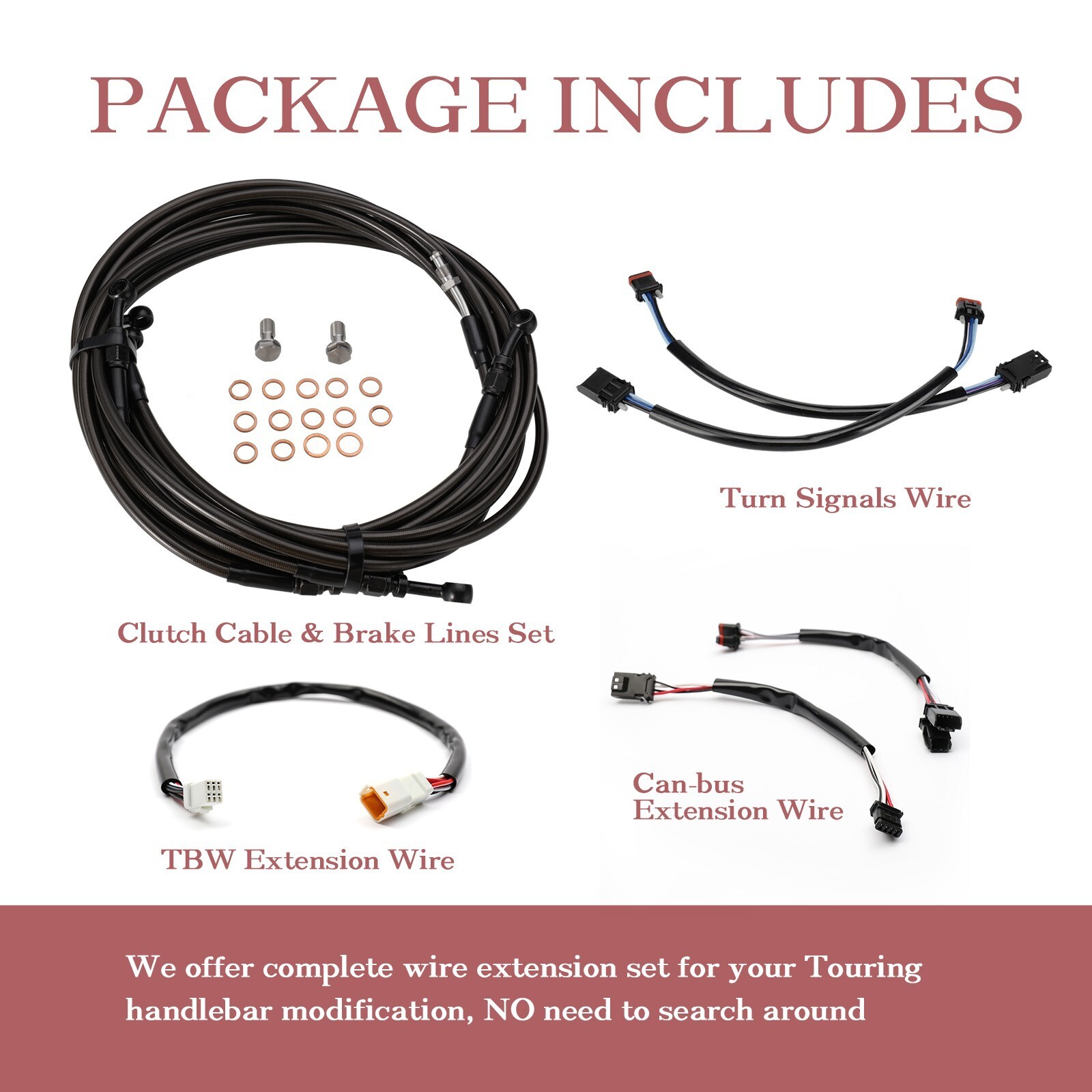 Important Notice : Before making a purchase, please review the product information carefully to ensure it meets your needs. Contact us directly for any issues before requesting a return or leaving negative feedback. We're here to assist you promptly. Leaving a negative comment without contacting us limits our ability to help. Thank you for your understanding. Our team is here to help, please don't hesitate to reach out. Fitment : 12-inch handlebars with ABS 2017–2020 Touring Electra Glide & Street Glide & Road Glide & Road King models Key Bullet: Extended Length for Taller Bars Upgrade your bike with our extended cables kit, designed for taller handlebars. These longer-than-stock cables ensure a comfortable and safe riding experience. All-in-One Cables Solution Say goodbye to the hassle of finding individual cables. Our comprehensive kit meets all your taller bar needs, making installation quick and easy so you can hit the road faster. Trustworthy Quality Crafted from stainless steel braided cables, our brake, clutch cables not only enhance your bike's look but also protect its sensitive areas. Durable inner wires ensure longevity and top performance for a reliable ride. Professional-Grade Wiring Featuring CAN-Bus and TBW wiring harnesses with color-matched wires and pre-installed pins, our kit ensures seamless, secure connections without harming your bike's system. Ride with confidence and ease. Package Includes Brake Line Clutch Cable CAN-Bus Wiring Harness TBW Wiring Harness Turn Signals Wire Customer Support Back-up with 24/7 customer service, if any questions you have, please message us to get a good solution. Delivery Policy: Rest assured that we are committed to providing excelle nt service, from delivery to returns. Fast, Secure, and Free Shipping: We offer fast, secure, and free shipping to ensure your orders reach you promptly and safely. Hassle-Free Returns: Returning an item is a quick and straightforward process. Simply reach out to us with your order details, and our team will be there to guide you every step of the way. Your satisfaction is our top priority, and we are fully committed to providing you with a professional and friendly service. If you have any questions or require assistance, our customer support team is always available to help you. We Value Your Feedback: Your feedback is crucial in improving our products and services. We highly appreciate your input and encourage you to share your experience and suggestions. We are dedicated to listening attentively and ensuring that your shopping experience exceeds your expectations. If you are satisfied with our products, please consider leaving us a 5-star review. We also welcome any questions or concerns you may have. Our team is available to assist you at any time. We believe that direct communication is more effective, and we are committed to addressing your inquiries promptly. About us: Welcome to our store! We are a reputable manufacturer of motorcycle parts, operating from our expansive 4000 square meter, state-of-the-art factory. With a dedicated team of over 800 skilled professionals, including 90 experienced senior engineers, we are committed to delivering exceptional products and services. Customer satisfaction is our top priority, and we strive to exceed your expectations. Explore our wide range of high-quality products and shop with confidence. https://www.ebay.com/str/ironbrotherhood
