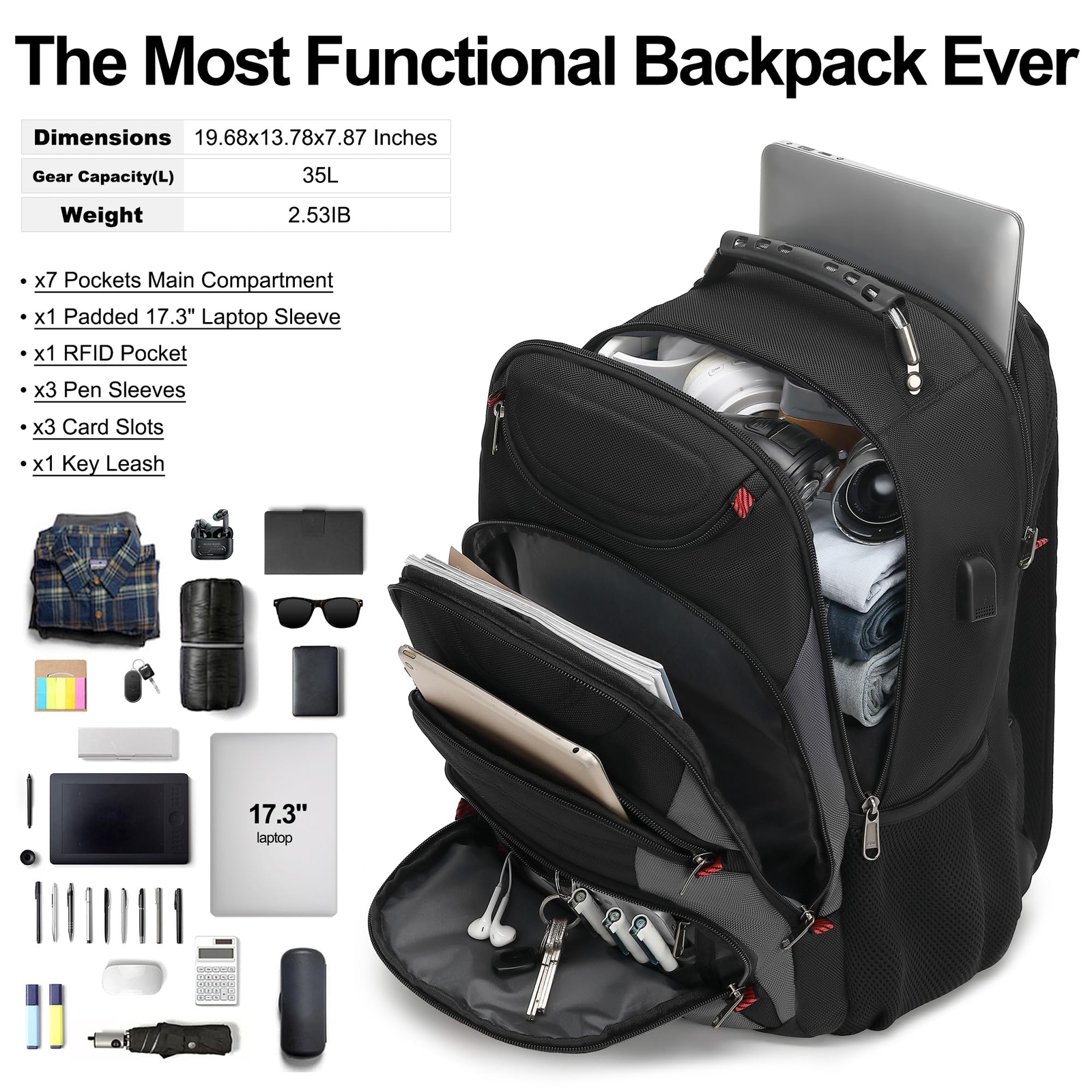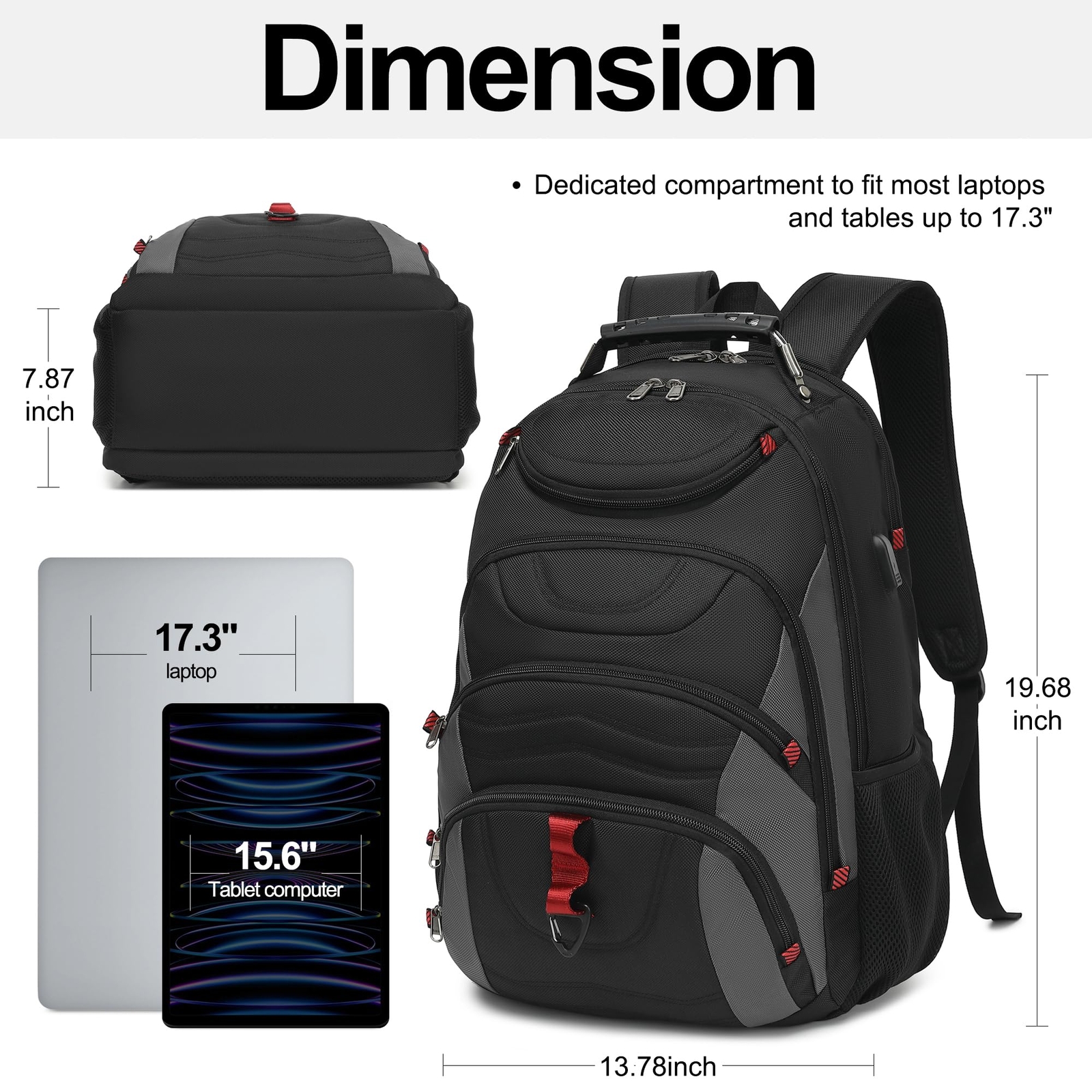 Exclusive Offers Await! Welcome to our stores! Satisfaction is what we guarantee. Laptop Backpack for Men -College Bookbag 17.3-Inch,Black/Dark Grey Product Overview Key Features Unparalleled Durability: Our backpack boasts a premium rugged exterior made from 1680D nylon that laughs in the face of rough weather. Rain or shine, your belongings are protected. Despite its toughness, it weighs a mere 2 pounds, ensuring you move with comfort and reliability Effortless Packing & Ample Storage: Packing has never been easier. Five exterior pockets provide quick access, while the spacious main compartment holds up to 5 or 7 days' worth of clothes. Your laptop stays safe in the padded compartment, and thoughtful details pen sleeves, card slots, a key leash, RFID pocket, and hidden security pocket keep you organized and worry-free College Life Redefined: This backpack isn't just a bag; it's a statement. The spacious main compartment easily accommodates your textbooks, notebooks, and a 17.3-inch laptop, keeping your essentials organized and protected. Say goodbye to the hassle of juggling multiple bags Comfort on the Go: Experience comfort during extended wear. Padded, ergonomically shaped, and adjustable back straps ensure a comfortable fit and mobility. The padded back provides extra support and promotes back health. The 's Laptop Backpack Wander-Full Models feature a special air circulation system for added comfort Global : Invest in the backpack and enjoy the peace of mind that comes with our Global . Crafted with meticulous attention to detail and tested for the highest quality standards, it offers exceptional durability and versatility. Your investment is protected against any manufacturing defects in material and workmanship, ensuring a worry-free travel experience Payment Information ★ Secure payments through eBay. ★ We accept PayPal and all major credit cards. ★ Immediate payment required upon purchase. ★ For any payment issues, please contact our support team. Shipping Information ★ Orders are shipped to the address provided during checkout. Please verify your address. ★ We process orders within 1 business day (excluding weekends and holidays). ★ Standard delivery time is 3-5 business days. ★ We use trusted carriers like UPS, FedEx, and USPS. ★ Shipping is only available within the contiguous United States. No shipping to Alaska, Hawaii, Puerto Rico, or PO Boxes. ★ If there are any shipping delays, please contact us for support. Return Policy ★ We offer a 30-day return policy. ★ If you are not satisfied with your purchase, you can return it within 30 days for a full refund. ★ Please contact us to obtain the return address before sending back any items. ★ Items must be returned in their original condition and packaging.