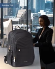 This backpack is a game-changer for travel and daily use! The thoughtful design includes tons of pockets to keep everything organized, and the separate laptop compartment makes access super easy. Love the USB charging port—so convenient for on-the-go power. It fits my 17” laptop perfectly and still has room for all my essentials. The stylish black design works for any occasion, whether I’m heading to class, work, or a weekend trip. Sturdy, spacious, and practical—definitely worth it!