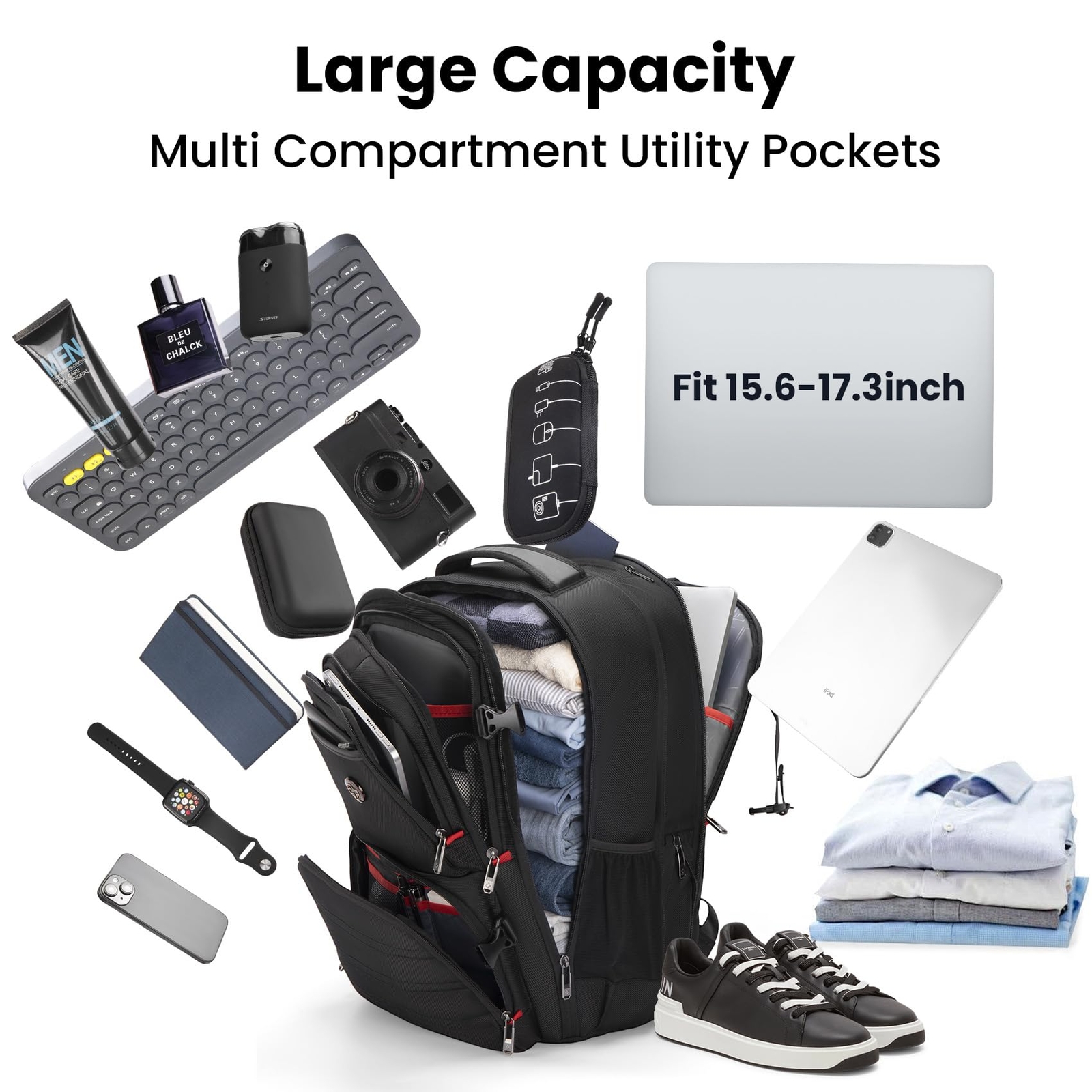 This backpack is a game-changer for travel and daily use! The expandable design fits so much without feeling bulky—perfect for my 17-inch laptop and extra gear. Love the clever organization with tons of pockets inside and out, plus the padded laptop compartment gives me peace of mind. Water-resistant material is a lifesaver in unexpected rain, and the sleek look works anywhere. Highly recommend for anyone who needs a durable, spacious, and smartly designed bag!