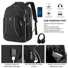 Large Capacity and Organized: Men travel backpack owns 20+ independent pockets for large storage and organization for small items. 4 spacious main multi compartments with many hidden pockets can accommodate lots of stuffs like college supplies, travel accessories, stationery, notebook, cord organizer, side elastic net pockets conveniently hold travel gear umbrellas or water bottles. Ideal book bag backpack great gifts for family and friends. Multipurpose RFID BACKPACK & ANTI THEFT: An RFID pocket with RFID function helps protect personal data encoded on your credit card, ID card and passport.The big backpack is perfect for indoor/outdoor activities. Served as sturdy large backpack, large school backpack for teen boys/girls, large laptop bag or spacious college backpack, you can use it at anywhere for International travel, camping, hiking and overnight trip. Practical and Convenient: External USB port with set-in charging cable offers convenient charging your cellphone. A hole for headphone outside gives easy access to earphone usage.Also, the student backpack with a sturdy rugged handle on the top for carrying, side compression straps keep the exclusive backpack at whatever size you requires. As a men's/women's backpack, you will enjoy it's fashionable, comfortable and convenient everywhere.(POWER BANK is not included) FUNCTIONAL & Comfortable: A well-knitted luggage strap is quite convenient to fix the backpack on the trolley of your luggage, making your journey and travelling more relaxing. Soft multi-panel ventilated padding makes maximum back air flow and support. Breathable and adjustable shoulder straps relieve the stress of shoulder. One sides of the shoulder strap with lanyard design, can hang sunglasses and other small pendants. Premium Book bags for men, also computer backpack for women. DIMENSION & DURABLE MATERIAL - Size of extra large college backpack:12.6 *7.8*19.6(inches), perfect to throw under your seat on an airplane when you are traveling or on business trip.Separate padded laptop compartment fits most 13, 14, 15, 15.6, 16, 17, and up to 17.3 inch laptop/Ipad/Computer.The business computer backpack made from high quality polyester fabric shockproof with high density nylon lining for better TEAR & WATER RESISTANT and Lightweight backpack.Age:over 6 years old.