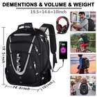 LARGE TRAVEL & GAMING LAPTOP BACKPACK : Large college backpack, Exterior size of the extra large business travel backpack:19.0 *14.6*10.2 inch(48.3*37.1*25.9 cm).Capacity:45L.Multi compartments give excellent protection for laptop computers and tablet.Fits most 17.3, 17, 16, 15.6, 15, 14, 13.3, 13 inch laptops.Fit to The Large Size laptop: Dell, Asus, Msi, Macbook, Alienware, Acer, HP, Lenovo Large gaming laptop or more laptops 17.3, 17 inches TSA FRIENDLY & LUGGAGE STRAP : At checkpoint, unfolds the backpack freely 180 degrees making you quickly through the airport security, exclusive designed for airplane traveling. You can attach the backpack to the trolley case of the luggage strap. Unleash the pressure on your shoulders and make your journey easier. Served as sturdy large backpacks for high school, large laptop bag or spacious college backpack for students, you can use it for Airplane Travel, Day hikes, Camping, Business RFID BACKPACK & ANTI-THEFT :RFID Pockets with RFID-radio frequency identification helps secure personal data encoded on you credit cards, IDs and passports.The oversized anti-theft pocket on the back of the backpack makes it easy to put your phone and wallet in.Design of an air-flow back padding system and a secret pocket ensures great comfort and safety in your journey.I hope that your journey will be safe and enjoyable. It's the perfect fathers day present for your dad. USB CHARGING & WATER RESISTANT : External USB port with set-in charging cable offers convenient charging your cellphone and other electronic devices everywhere.A hole for headphone outside gives easy access to Earphone usage. The travel backpack made of water-resistant sturdy polyester fabric(long time soaking is not recommended), with heavy-duty locked zippers, which can withstand harsh conditions and heavy use.A rugged handle with steel cable on the top is easy for you to carry with one hand COMFORTABLE BACK DESIGN & CHEST STRAP : Airflow back with Back U-shaped three-dimensional ventilation design help for the air convection. Both sides of the shoulder strap with lanyard design can hang sunglasses and pendants. Adjustable chest strap brings the shoulder straps in tighter to the chest,helps you lock your backpack in place securely, prevents the shoulder straps from falling off. And it is a great present for men or women New Year and Chrismas of peace of mind, comfort, fashion
