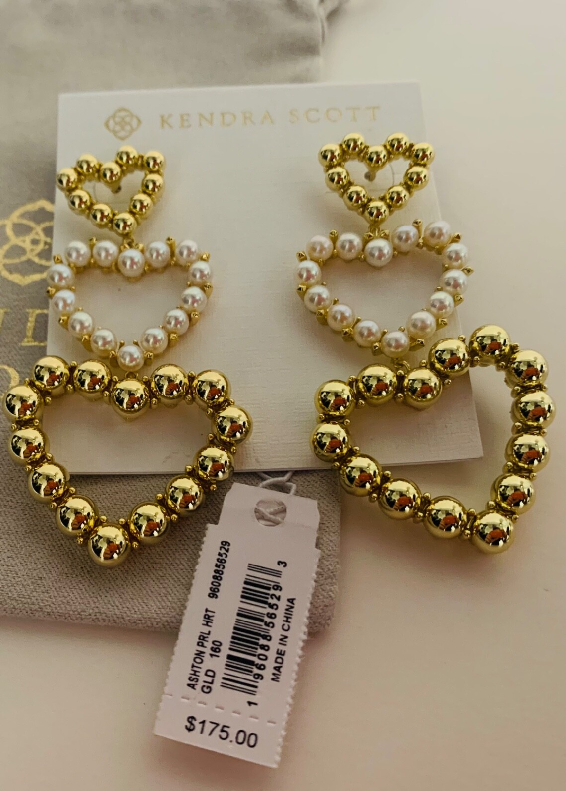 RACCOON STASH NYC WELCOMES YOU! 100% Money Back Guarantee! Brand New KENDRA SCOTT Ashton Collection Triple Heart Freshwater Pearl 14K Gold Plated Statement Earrings 3" MSRP: $175 Style: # ASHTON PEARL HEART Color: 14K Gold / Pearl Size: 3" Length CONDITION: Brand New, comes WITHOUT Kendra Scott Dust Bag, retail tag. We will include generic dust bag . Please feel free to ask any questions before placing your order! All items are packaged carefully for shipping to prevent any damage during transportation. International Buyers - Please Note: Import duties, taxes, and charges are not included in the item price or shipping cost. These charges are the buyer's responsibility. Please check with your country's customs office to determine what these additional costs will be prior to bidding or buying. If you have any questions please feel free to ask. Thank you for choosing us! Item ID: RV J_020
