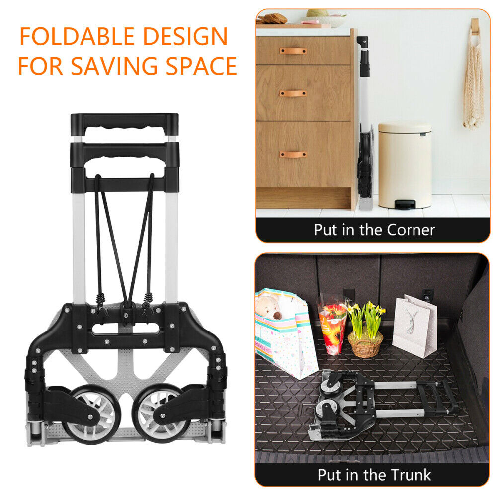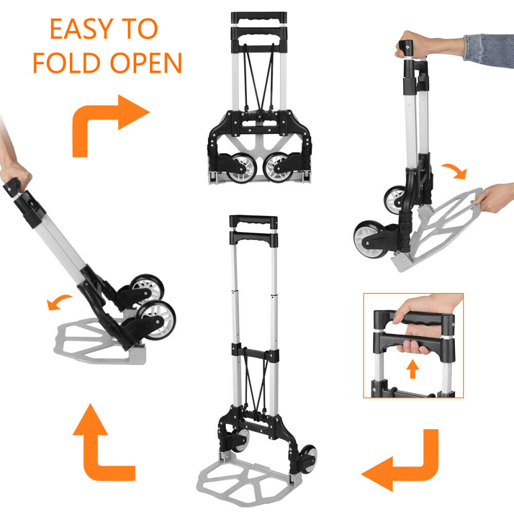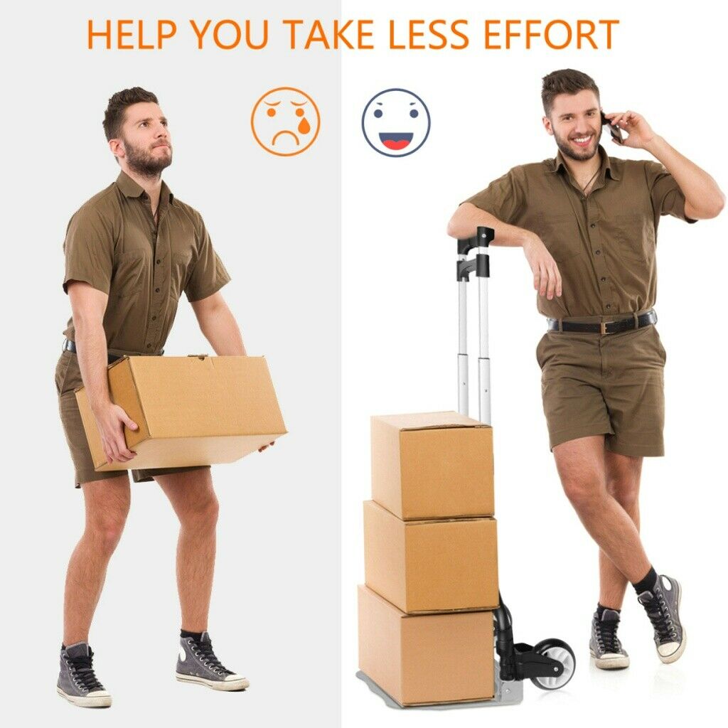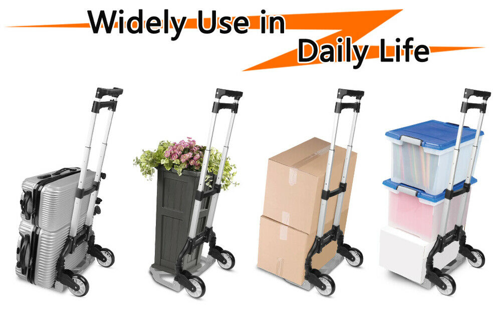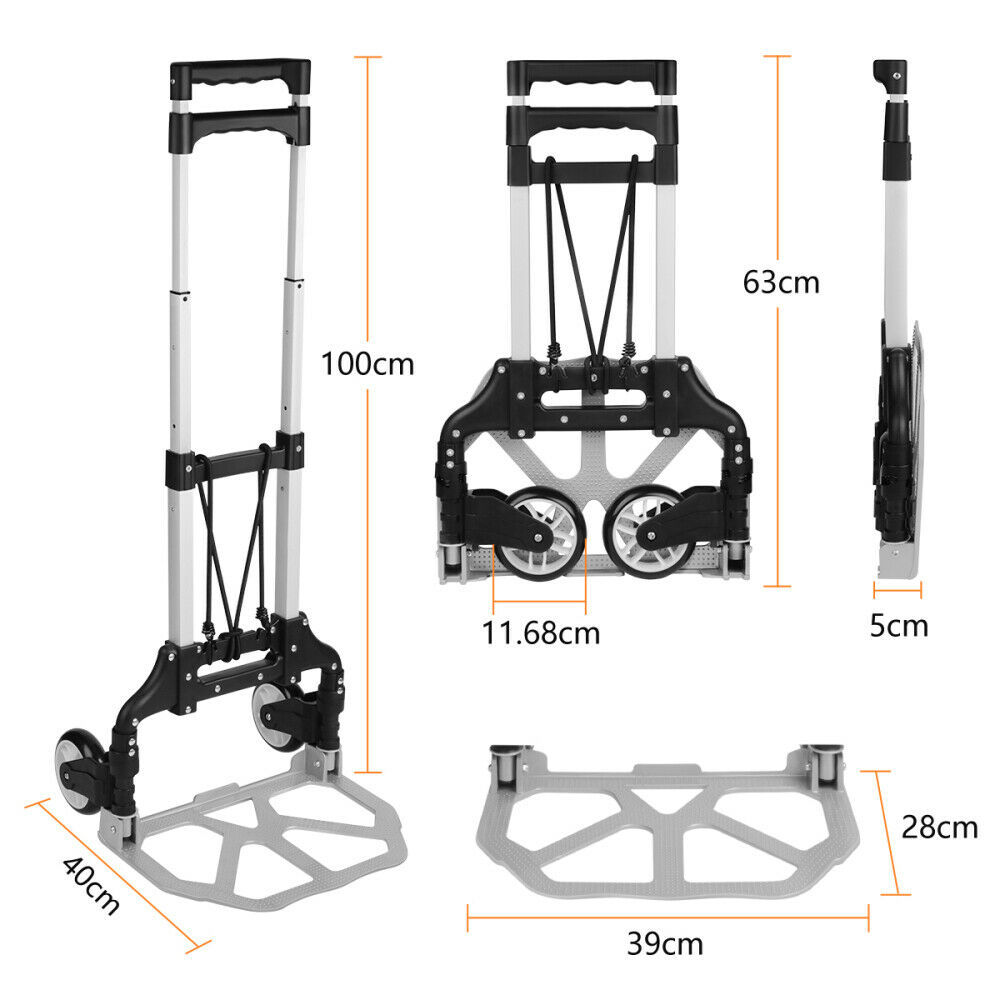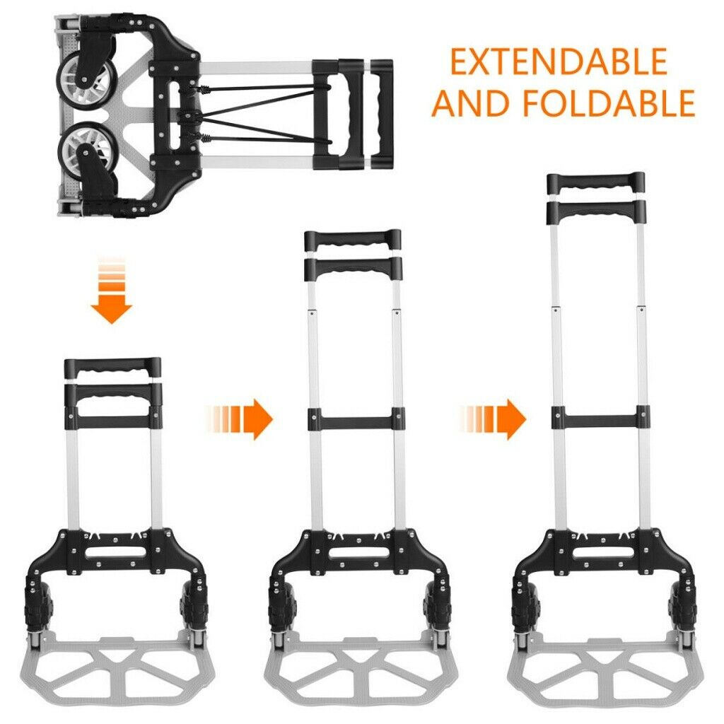 176lbs Cart Folding Dolly Push Truck Hand Collapsible Trolley Luggage Aluminium Description Introductions: Make it more labor-saving to carry your luggage with this Portable Folding Collapsible Aluminum Cart Dolly Push Truck Trolley! It is really in user-friendly design by trolley style. Made of solid aluminum alloy, PVC and PP materials, this cart is durable and reliable to sustain weight. Its folding and stretchable design could not save space when not in use, but also bring you endless convenience. So, what do you hesitate for? Features : 1. New and in a good condition 2. With the adoption of premium materials and fine workmanship 3. It is wear-resistant to use for long time 4. Foldable and collapsible design, space-saving 5. Easy to carry your heavy luggage Specifications : 1. Color: Black 2. Material: Aluminium Alloy & PVC & PP 3. Maximum Load: 165.35 lbs (75kg) 4. Height Folded: 23.62" / 60cm 5. Height Extended: 39.37" / 100cm 6. Bearing Plate Dimensions: (15.35 x 11.02)" / (39 x 28)cm (L x W) 7. Folded Thickness: 1.97" / 5cm 8. Weight: 5.73 lbs (2.6kg) 9. Unfolding Dimensions: (39.37 x 15.75 x 15.35)" / (100 x 40 x 39)cm (L x W x H) Package Includes: 1 x Aluminium Cart Folding Dolly Push Truck Hand Collapsible Trolley Luggage Product Video : English: https://youtu.be/PfUhpc5Pf4w Japanese: https://www.youtube.com/watch?v=XJmiV_SIZa8&t=16s Payment Shipping About US *We accept Paypal. *Please confirm your shipping address in the checkout. If your old address is imported from PayPal, please correct it before completing payment. *Purchase paid via PayPal will be shipped to the “confirmed” name and address on the buyer’s PayPal account. Please call prior to purchase if you would like to ship to a different name on the address. *We ship within 5 Working day after we received your cleared payment. In order to deliver goods to customers faster and improve customer shopping experience, Our products are delivered to you after passing strict quality inspections. We have a professional customer service team. If you encounter any problems, please contact us in time, and we will provide you with a satisfactory solution as soon as possible.