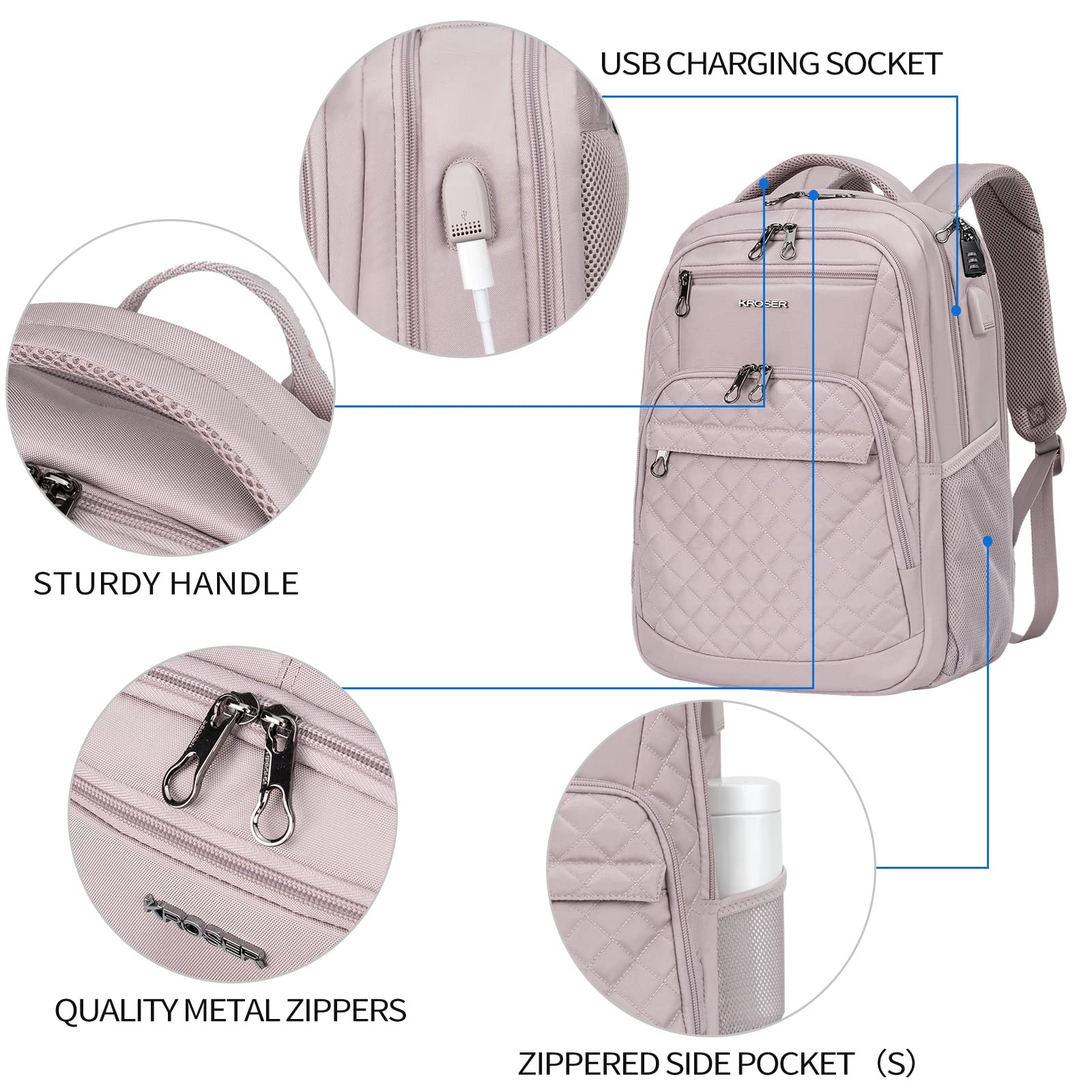 DURABLE MATERIAL: This stylish laptop backpack is made of high-quality water-repellent poly fabric; Dimensions: 19.3”x13”x7.9”, fits up to 17 inch laptop; Weight: 2.98LBS. MULTI-FUNCTIONAL COMPARTMENTS: Separated compartments and pockets are designed to provide roomy space for your computer, iPad, power bank, A4 files, wallet, cards, clothes, etc. Well-padded foam for your computer with organizer dimensions fits up to 17 inch laptop. RFID Pockets with Identity protection function protects date encoded on most IDs, credit cards and passports. USB PORT : Built-in USB port is convenient to charge your cell phone by the connected power bank in a safe way. (POWER BANK is not included) FUNCTIONAL & SAFETY: A well-knitted luggage strap is quite convenient to fix the backpack on the trolley of your luggage, making your journey and travelling more relaxing. Design of an air-flow back padding system and a secret pocket on the back ensures great comfort and safety in your journey. DURABLE & COMFORTABLE: This practical backpack is large and durable, well-padded back panel close to your back tightly, adjustable padding shoulder straps and sturdy handle offer you comfort carrying for a long time. Perfect for college, travel, business, everyday use and outdoor activities.