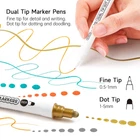 18 Colors Dual Tip Dot Markers MORE COLORS, MORE CHOICES: Our dual tip dot markers come in a vibrant set of 18 bright colors, offering a rich selection for various applications. Designed to enhance productivity, these markers are ideal for highlighting important text, categorizing notes, and personalizing planners. DUAL TIP MORE COMBINATIONS: The 0.8mm fine tip of classic colors and 1mm fine tip of metallic colors are perfect for writing, marking and detail drawing .The round tip is not only for dots but also for lines and shapes. Apply different pressure on the tips you will get different sizes of dots and shapes which has so many combinations to offer SATISFIED YOUR NEEDS: These dual tip dot markers with vibrant colors can be used for planning the timetable, checking your daily planner and highlighting a to-do list. It also suitable for your bullet journal, work planner and word search books, which can satisfied the majority of your needs for markers. QUICKLY DRY & WRITE SMOOTHLY: The water-based pigment ink is durable for smooth, clear writing and quickly dry without ruin the pages. And it also allows you to hold comfortable. Both kids and adults can easy use and have fun with dual tip dot markers SAFETY & PREMIUM QUALITY: Our dual tip dot markers are non-toxic, acid-free and odorless. It conforms to ASTM D-4236 and EN71 standard. Safe for both kids and adults SERVICE GUARANTEE: Your satisfaction is our top priority, please rest assured to purchase our products. If you are not satisfied with our products or have any questions, please feel free to contact us at any time
