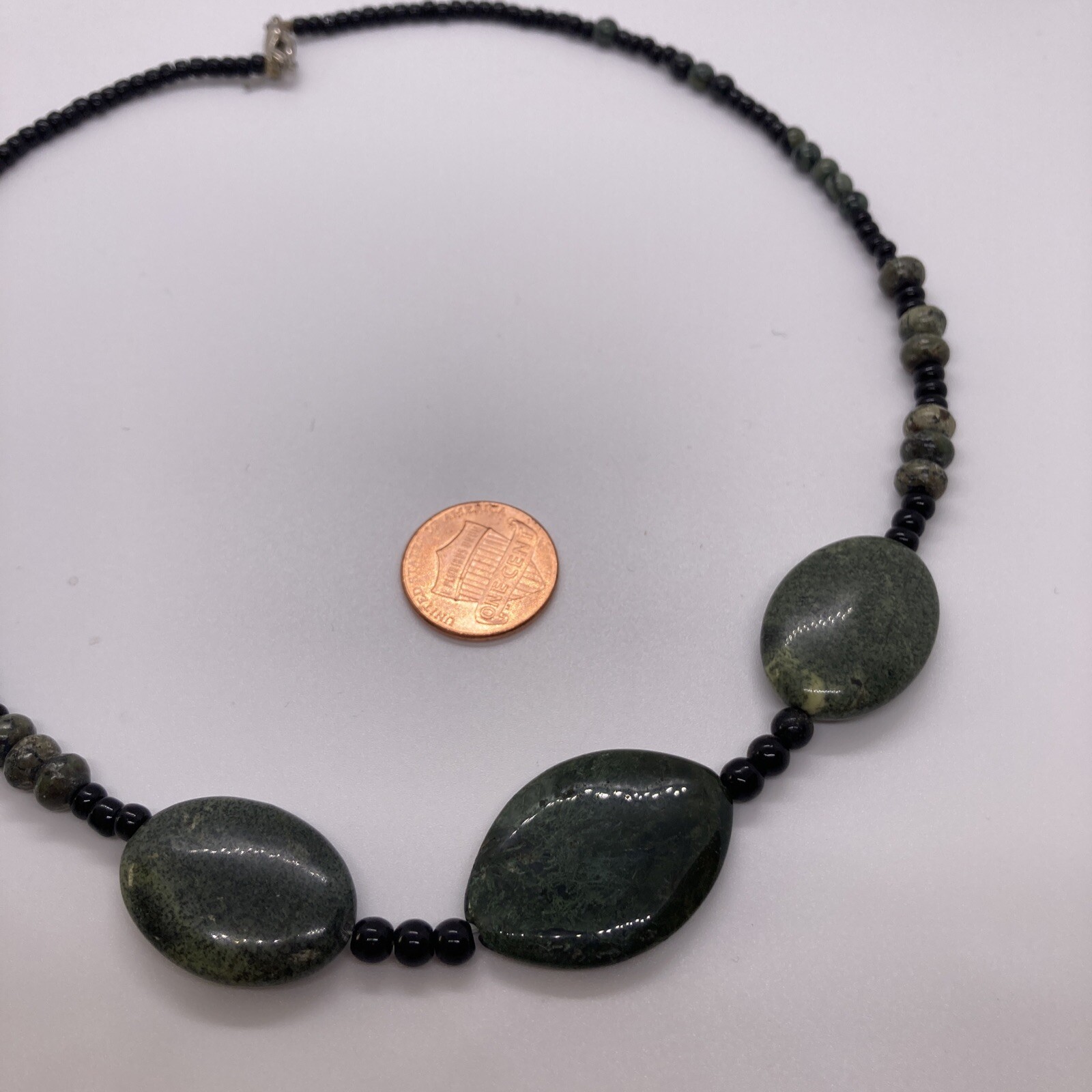 18" Semi-Precious Stone Necklace in Green and Black. Handcrafted
