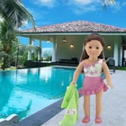 FITS DOLL SIZE: Made to fit most 18 inch dolls. FITS DOLL SIZE: Made to fit most soft bodied 18 Inch dolls similar to American Girl, Journey Girls, Our Generation, Madame Alexander, My Life As, etc. FEATURE DESCRIPTION: Pretty 18" doll swimsuit set includes a bright green beach towel, ruffled skirt coverup, and perfect pink beach sandals. What a VALUE! KID SAFE: All products have passed required CPSIA and ASTM safety testing, and are fully certified. Parents can have peace of mind knowing all our products are phthalate and lead free. UNIQUE QUALITY DESIGNS: Designed in the USA by , proudly located in Dayton, Ohio! Unique designs, all with durable reinforced stitching, using high quality fabrics. High quality construction for endless hours of fun! Hand washable.