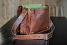 100% genuine goat leather messenger bag with a durable inner lining made of canvas. Designed to carry tab, documents or other personal belongings, etc. A genuine hand made product using chemical/dye-free leather. Natural oils and light have been used to obtain the style of the leather - chemical free! This bag features a wonderful unique and vintage look, designed to carry tab, documents, personal belongings. Perfect for the office, school or as a gift! Specifications: Made from 100% genuine, strong, lightweight, durable goat leather, tanned without the use of chemicals Adjustable shoulder strap, full flap bag with magnet lock 2 big inner compartment for carrying files, tab's etc. 2 chain compartments for important documents/paperwork etc. Inner canvas lining Vintage leather wash Leather softens and darkens with use Handmade in India by experienced crafts people.