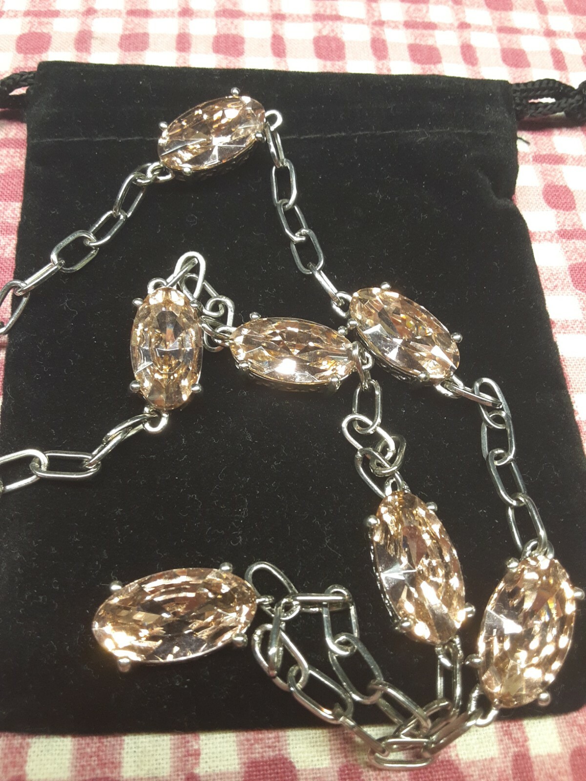 Est Ret Price $489.99 Designer Inspired Paper Clip Design Karis Vintage Rose Color Crystal Station Necklace in Platinum Bond Brass Made With Crystal From Swarovski 18 Inches Length The Metal Secret - Crafted in Platinum Bond Metal an Impressive Luster with Greater Durability is Provided to this Ravishing Beauty 7 Gems 18mm X 9.5 mm (Large Ovals) To Clean : Gently Buff Each Individual Crystal with a Soft Lint Free Cloth Free Laser Tag Certification Provided with Purchase Value Buy - Replacement Crystals can be Expensive Keep Dry - Store Dry Free Shipping
