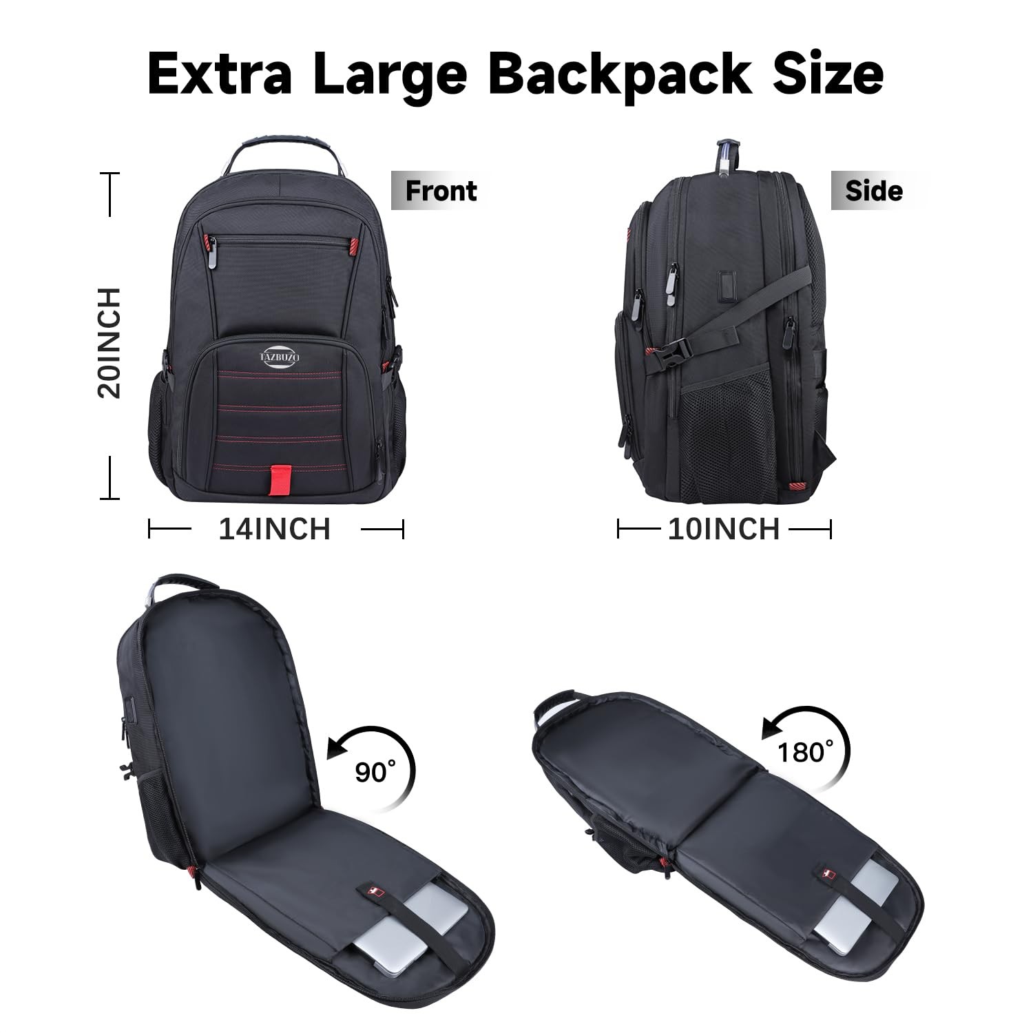 Extra Large Backpack, Travel Backpack, Laptop Backpack for Men Women, Water Resistant Airline Approved Business Work College Computer Heavy Duty Bag Bookbag with USB Port, Fits 18.4 Inch Laptops ✨EXTRA LARGE CAPACITY & ORGANIZED: The travel School bag owns 3 spacious main multi-compartments with many hidden pockets for large storage and organization for small items. This School Travel Backpack has a separate laptop compartment fits 17.3/17/15.6 inch laptops, and one main compartment is roomy for daily necessities, such as travel accessories. The front compartment of the School Laptop backpack has many small pockets, such as pen pocket and a keychain design to keep your things organized. ✨TSA AIRLINE APPROVED: Designed for air travel. The heavy duty School backpack for men and women can be freely unfolded 90-180 degrees, Get through airport security quickly. Large School laptop backpack is a companion for outdoor/indoor activities, which is very suitable for daily use and travel.backpack for Father's Day Gifts, backpack for Mother's Day Gifts.Gifts for men, Gifts for women,computer bags for women,computer bags for men,business backpack for men, business backpack for women. ✨USB CHARGING PORT & HEADPHONES HOLE: External USB charging port with built-in charging cable, extra large School Travel backpack airline approved is easily to charge your phone and other electronic devices (NOTE: POWER BANK IS NOT INCLUDED). Also, there is a headphone hole on the outside the Laptop backpack for you to use headphones at any time.As a School backpack for men / backpack for women / travel backpack / carry on backpack / School backpack . ✨BREATHABLE & COMFORTABLE: The large School travel backpack for men with a padded and breathable mesh back panel to aid in ventilation and heat dissipation. Shoulder straps are made of honeycomb-breathable material. The ergonomic design ensures that the weight of the extra large Laptop backpack is distributed, reducing stress on the shoulders. ✨100% WARRANTY: We provide lifetime worry-free product after-sales service. The customer service of the extra large Travel School Backpack for men and women is friendly, you can feel free and contact us at any time. School Backpack, Laptop Backpack, Carry on Backpack, Durable Extra Large 17 Inch TSA Friendly Business Travel Laptop Backpack with USB Port, Anti Theft tsa backpack Bag Gifts for Men Women,you deserve it!