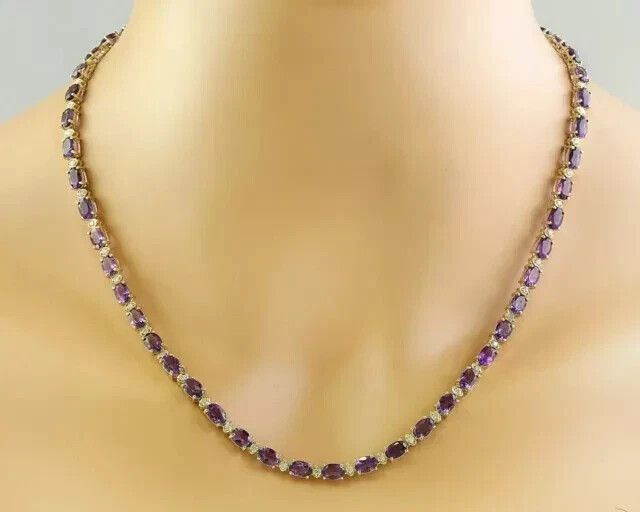 $ 110.5218CT Round Cut Lab Created Amethyst Womens Tennis Necklace 14K WhGold Plated 18”
